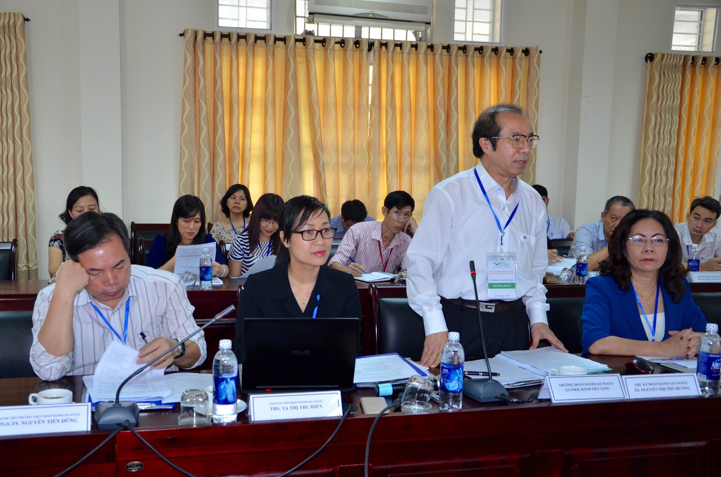 GS.TSKH. Bành Tiến Long, trưởng đoàn khảo sát báo cáo về kết quả nghiên cứu hồ sơ tự đánh giá, thông qua kế hoạch khảo sát chính thức.