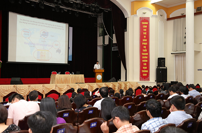 Viện trưởng Viện Đảm bảo chất lượng giáo dục, ĐHQGHN Nguyễn Quý Thanh đã giới thiệu các nội dung của bộ tiêu chuẩn đánh giá cơ sở giáo dục của mạng lưới AUN-QA.