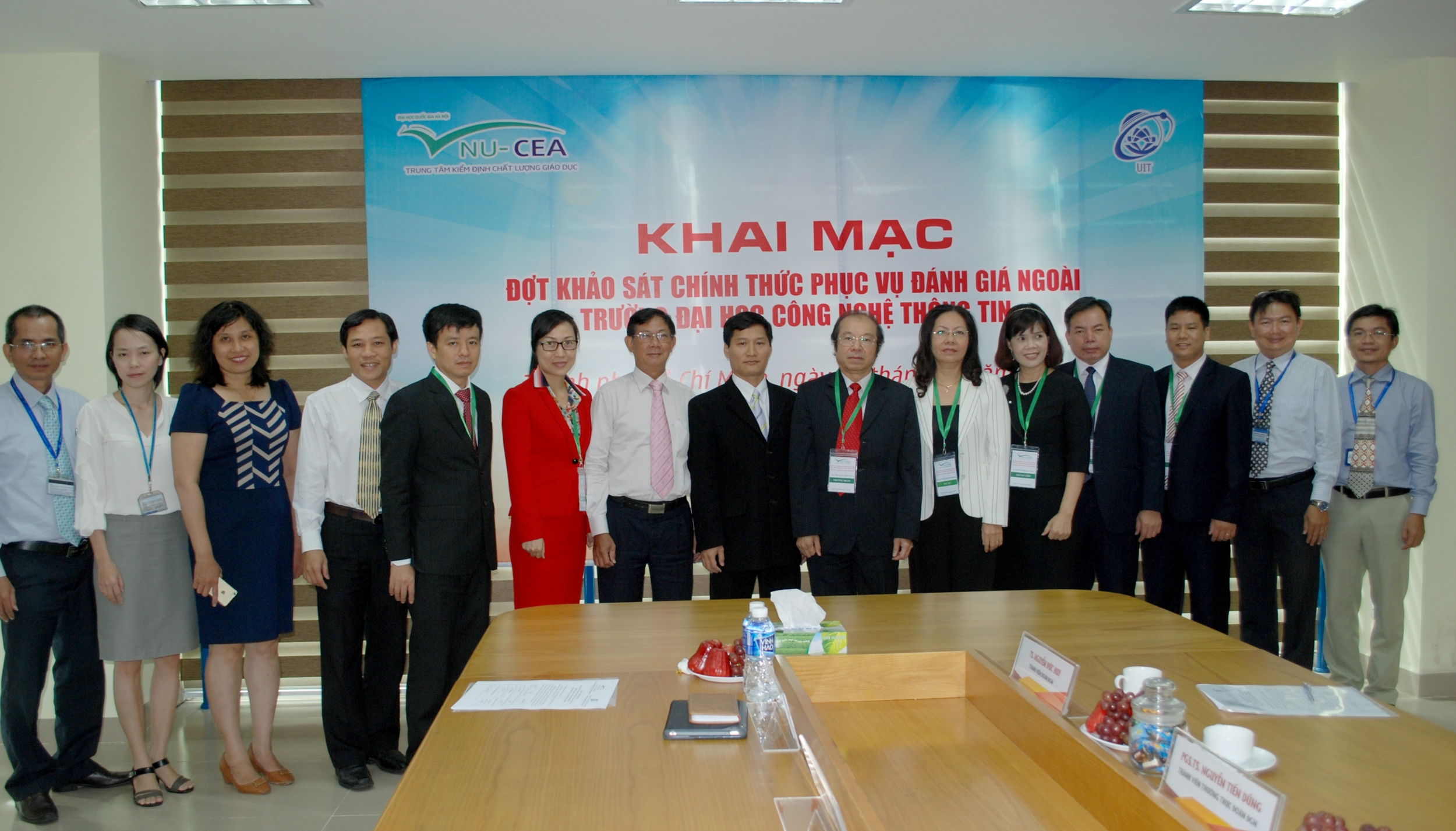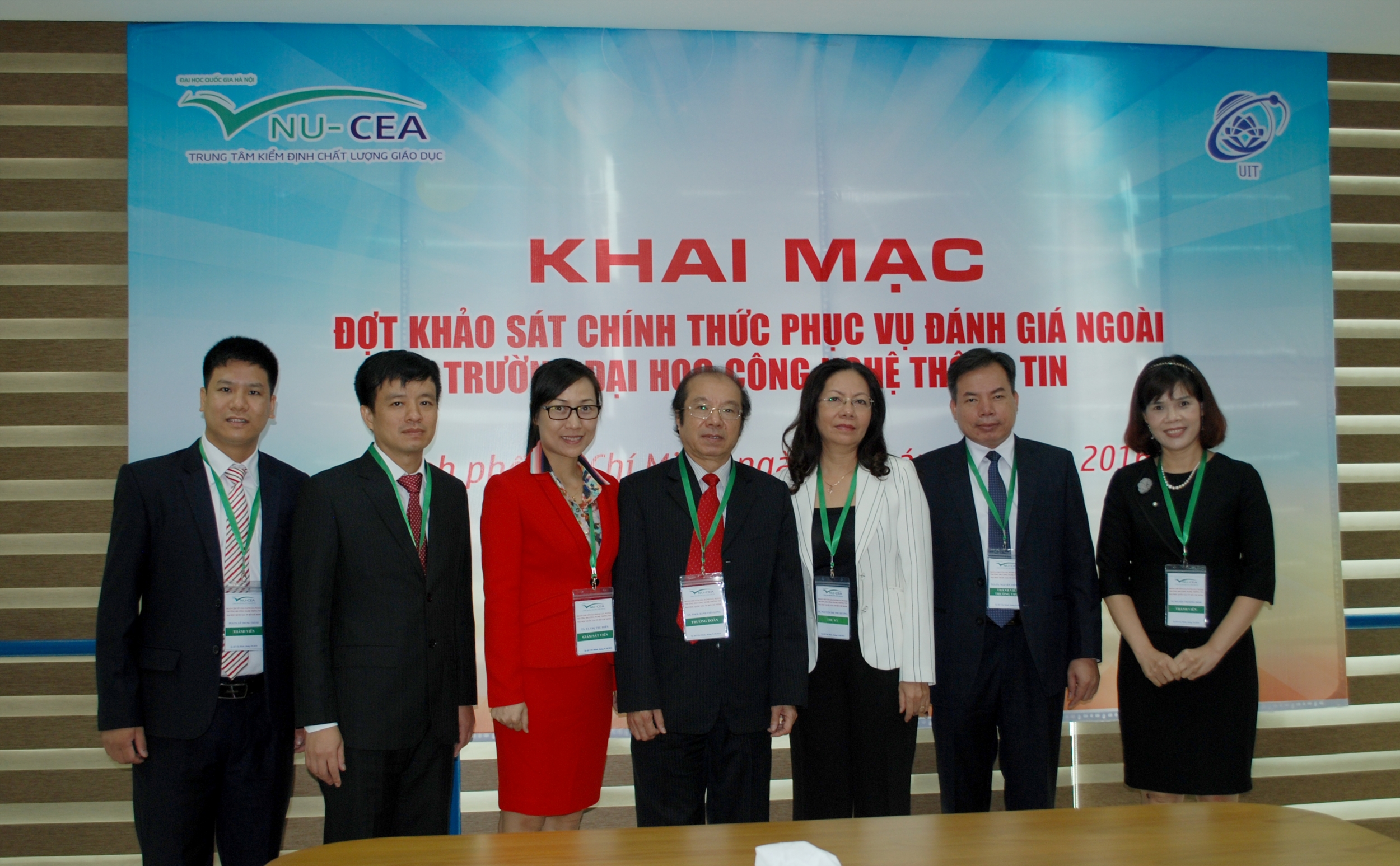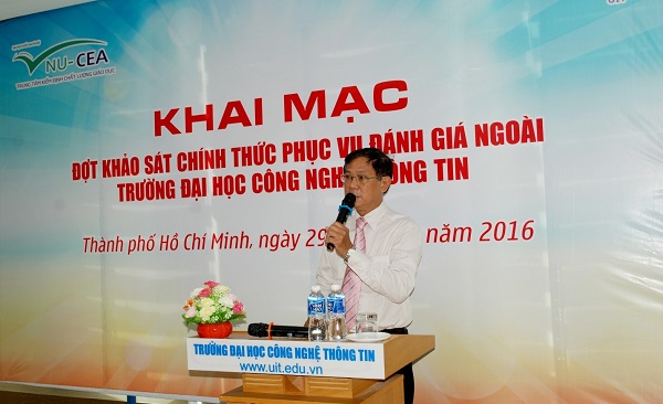 Sáng ngày 29/10/2016, Trung tâm Kiểm định chất lượng giáo dục - Đại học Quốc gia Hà Nội (KĐCLGD-ĐHQGHN) đã phối hợp với Trường Đại học Công nghệ Thông tin, Đại học Quốc gia Thành phố Hồ Chí Minh (ĐHCNTT, ĐHQG-HCM) tổ chức lễ khai mạc khảo sát chính thức phục vụ đánh giá ngoài Trường ĐHCNTT, ĐHQG-HCM theo tiêu chuẩn đánh giá chất lượng trường đại học của Bộ Giáo dục và Đào tạo.