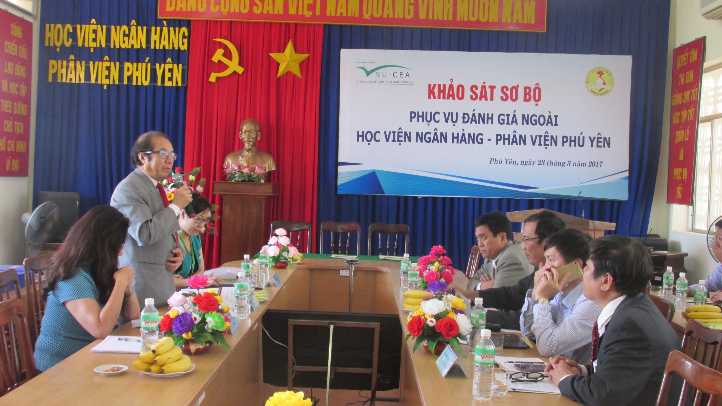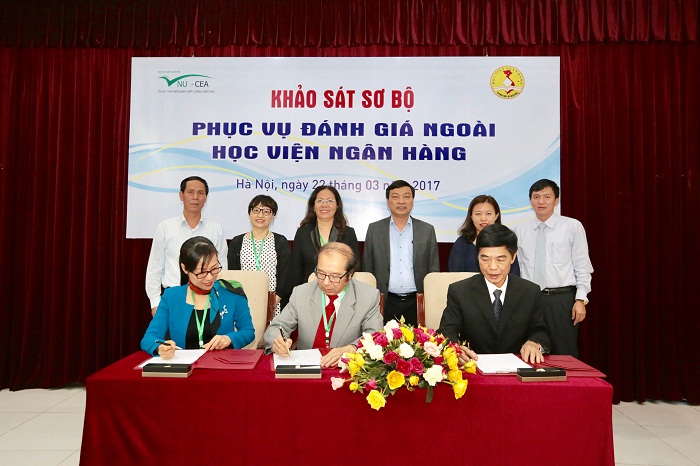 Chiều ngày 22/3/2017, tại trụ sở Hà Nội, Đoàn chuyên gia đánh giá ngoài (ĐGN) của Trung tâm Kiểm định chất lượng giáo dục - Đại học Quốc gia Hà Nội (KĐCLGD-ĐHQGHN) đã tiến hành khảo sát sơ bộ tại Học viện Ngân hàng để chuẩn bị cho đợt khảo sát chính thức Học viện theo quy trình đánh giá chất lượng trường đại học của Bộ Giáo dục và Đào tạo.