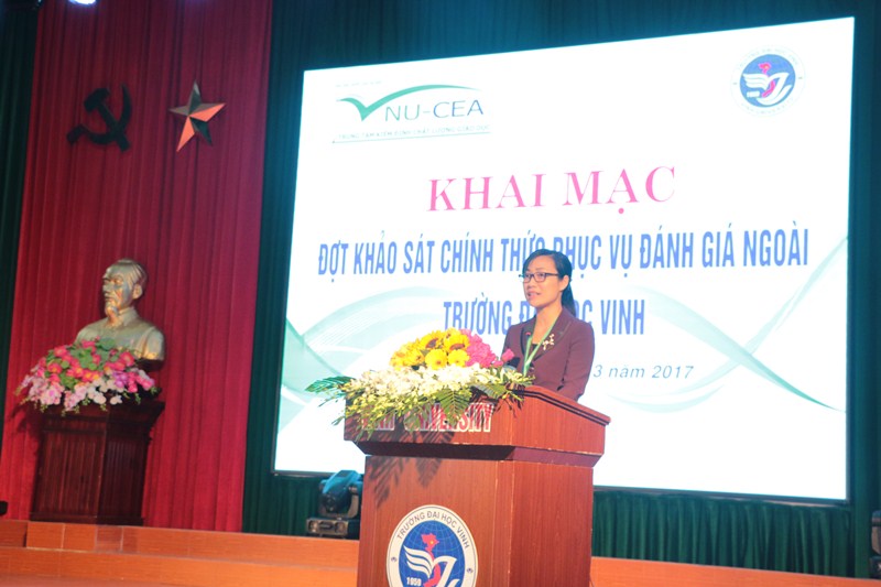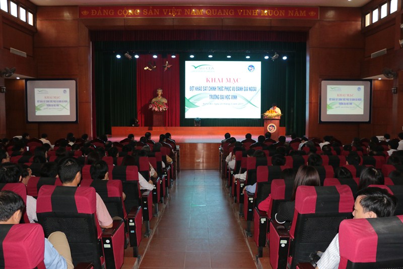 Sáng ngày 25/3/2017, Trung tâm Kiểm định chất lượng giáo dục - Đại học Quốc gia Hà Nội (KĐCLGD-ĐHQGHN) đã phối hợp với Trường Đại học Vinh tổ chức lễ khai mạc khảo sát chính thức phục vụ đánh giá ngoài Trường Đại học Vinh theo tiêu chuẩn đánh giá chất lượng trường đại học của Bộ Giáo dục và Đào tạo.
