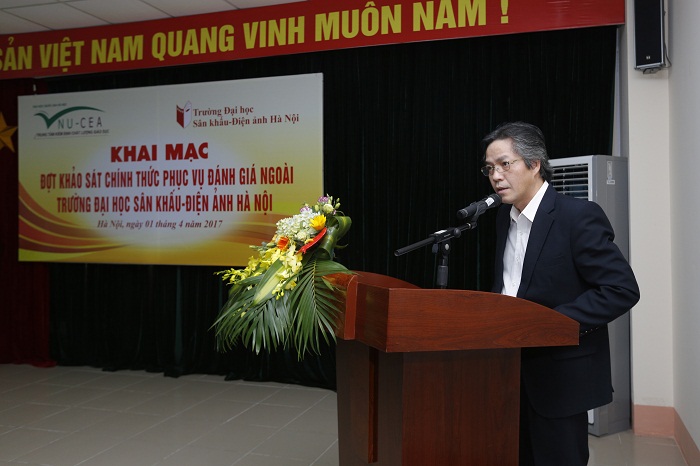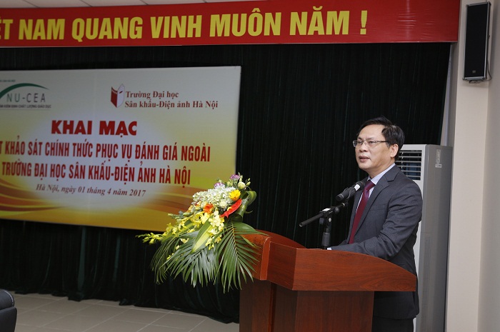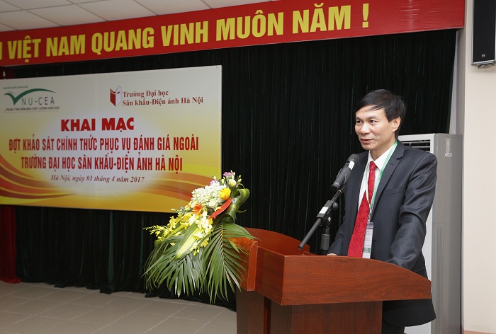 Tại buổi lễ, đại diện Bộ Văn hóa, Thể thao và Du lịch, PGS.TS. Lê Anh Tuấn cho biết, Trường ĐH Sân khấu – Điện ảnh Hà Nội là một trong những trường đầu ngành của Bộ đã xây dựng đề án trường trọng điểm. Đây cũng là Trường đại học đầu tiên trong số 26 trường thuộc Bộ quản lý thực hiện hoạt động kiểm định chất lượng giáo dục. PGS.TS. Lê Anh Tuấn đề nghị Nhà trường cung cấp đủ minh chứng cho Đoàn đánh giá ngoài làm việc, đồng thời đề nghị Đoàn cũng cần quan tâm đến yếu tố đặc thù của Nhà trường trong quá trình đánh giá.