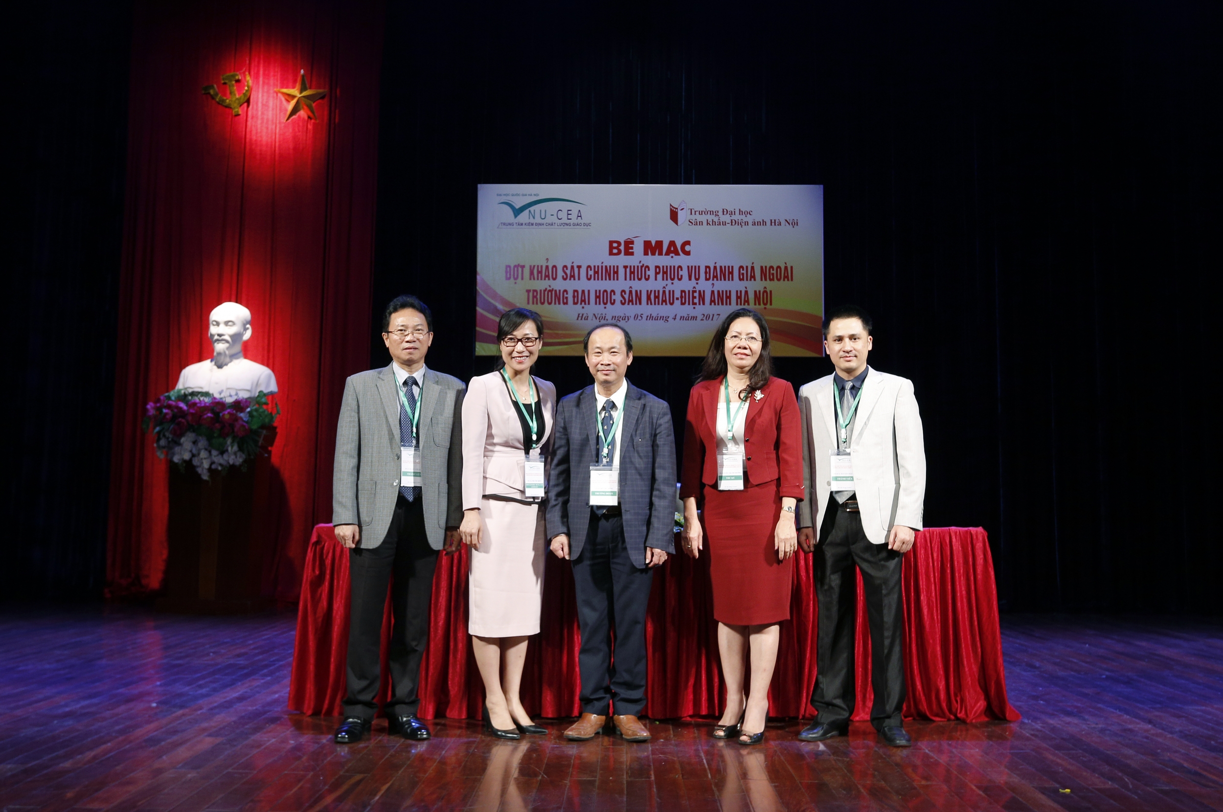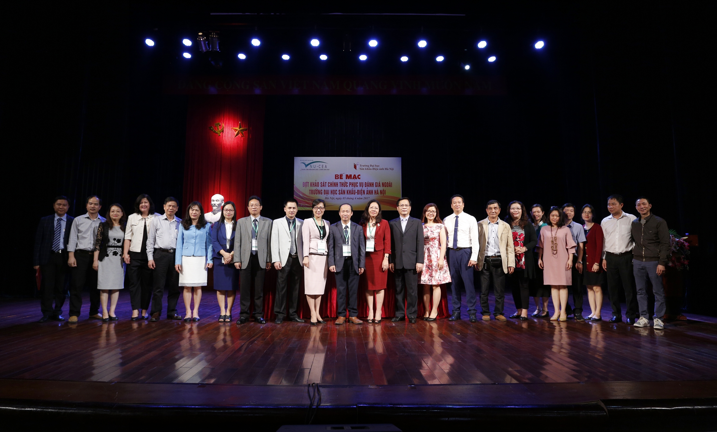 Sáng ngày 05/4/2017, Trung tâm Kiểm định chất lượng giáo dục - Đại học Quốc gia Hà Nội đã phối hợp với Trường Đại học Sân khấu-Điện ảnh Hà Nội tổ chức bế mạc đợt khảo sát chính thức phục vụ đánh giá ngoài Trường Đại học Sân khấu-Điện ảnh Hà Nội.