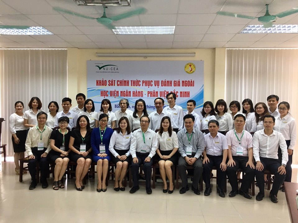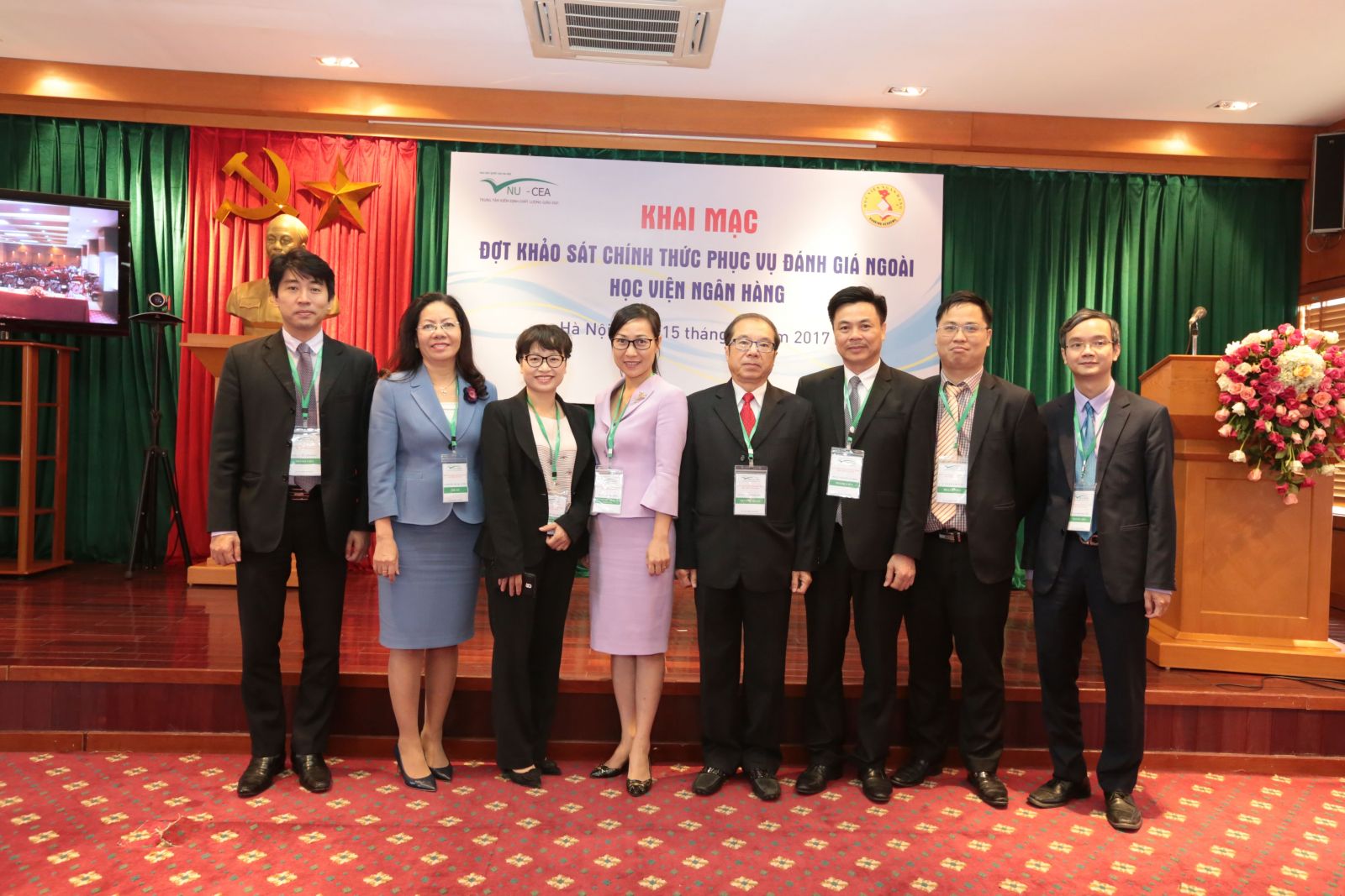 Sáng ngày 15/4/2017, Trung tâm Kiểm định chất lượng giáo dục - Đại học Quốc gia Hà Nội (KĐCLGD-ĐHQGHN) đã phối hợp với Học viện Ngân hàng tổ chức lễ khai mạc khảo sát chính thức phục vụ đánh giá ngoài Học viện Ngân hàng theo tiêu chuẩn đánh giá chất lượng trường đại học của Bộ Giáo dục và Đào tạo.