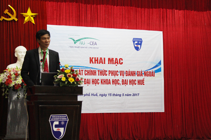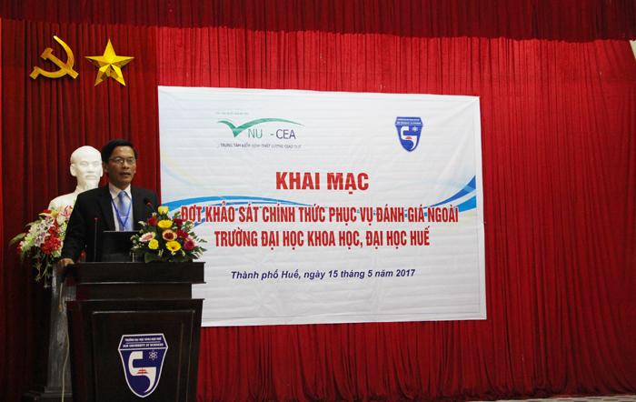 Sáng ngày 15/5/2017, Trung tâm Kiểm định chất lượng giáo dục - Đại học Quốc gia Hà Nội (KĐCLGD-ĐHQGHN) đã phối hợp với Trường Đại học Khoa học – Đại học Huế tổ chức lễ khai mạc khảo sát chính thức phục vụ đánh giá ngoài Trường Đại học Khoa học – Đại học Huế theo tiêu chuẩn đánh giá chất lượng trường đại học của Bộ Giáo dục và Đào tạo.