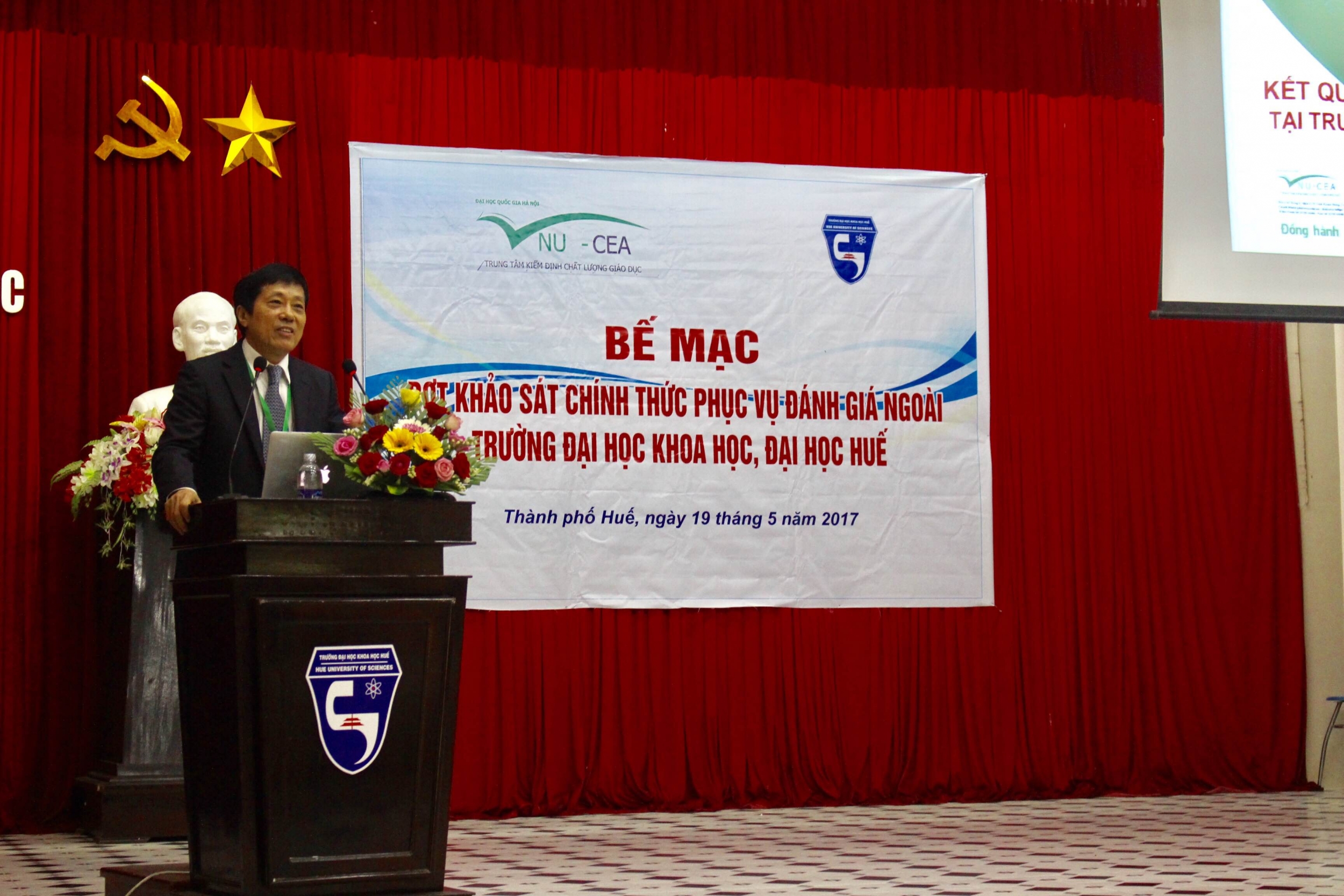 Phát biểu tại buổi bế mạc, GS.TS. Mai Trọng Nhuận, Trưởng đoàn đánh giá ngoài báo cáo sơ bộ kết quả khảo sát chính thức tại Trường Đại học Khoa học, Đại học Huế. Báo cáo của Đoàn đã nêu rõ những điểm mạnh và những vấn đề cần cải tiến chất lượng bám sát các tiêu chí đánh giá chất lượng trường đại học, đồng thời Đoàn cũng đưa ra các khuyến nghị để cải tiến chất lượng đối với Nhà trường.