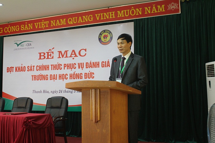 Phát biểu tại buổi bế mạc, PGS.TS. Trần Thị Hà, Trưởng đoàn đánh giá ngoài báo cáo sơ bộ kết quả khảo sát chính thức tại Trường Đại học Hồng Đức. Báo cáo của Đoàn đã nêu rõ những điểm mạnh và những vấn đề cần cải tiến chất lượng bám sát các tiêu chí đánh giá chất lượng trường đại học, đồng thời Đoàn cũng đưa ra các khuyến nghị để cải tiến chất lượng đối với Nhà trường.