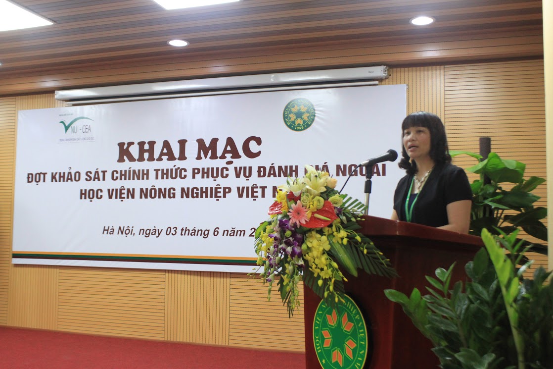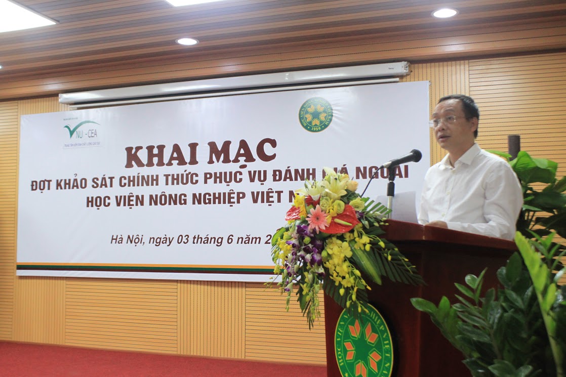 Sáng ngày 03/6/2017, Trung tâm Kiểm định chất lượng giáo dục - Đại học Quốc gia Hà Nội (KĐCLGD-ĐHQGHN) đã phối hợp với Học viện Nông nghiệp Việt Nam tổ chức lễ khai mạc khảo sát chính thức phục vụ đánh giá ngoài Học viện Nông nghiệp Việt Nam theo tiêu chuẩn đánh giá chất lượng trường đại học của Bộ Giáo dục và Đào tạo.