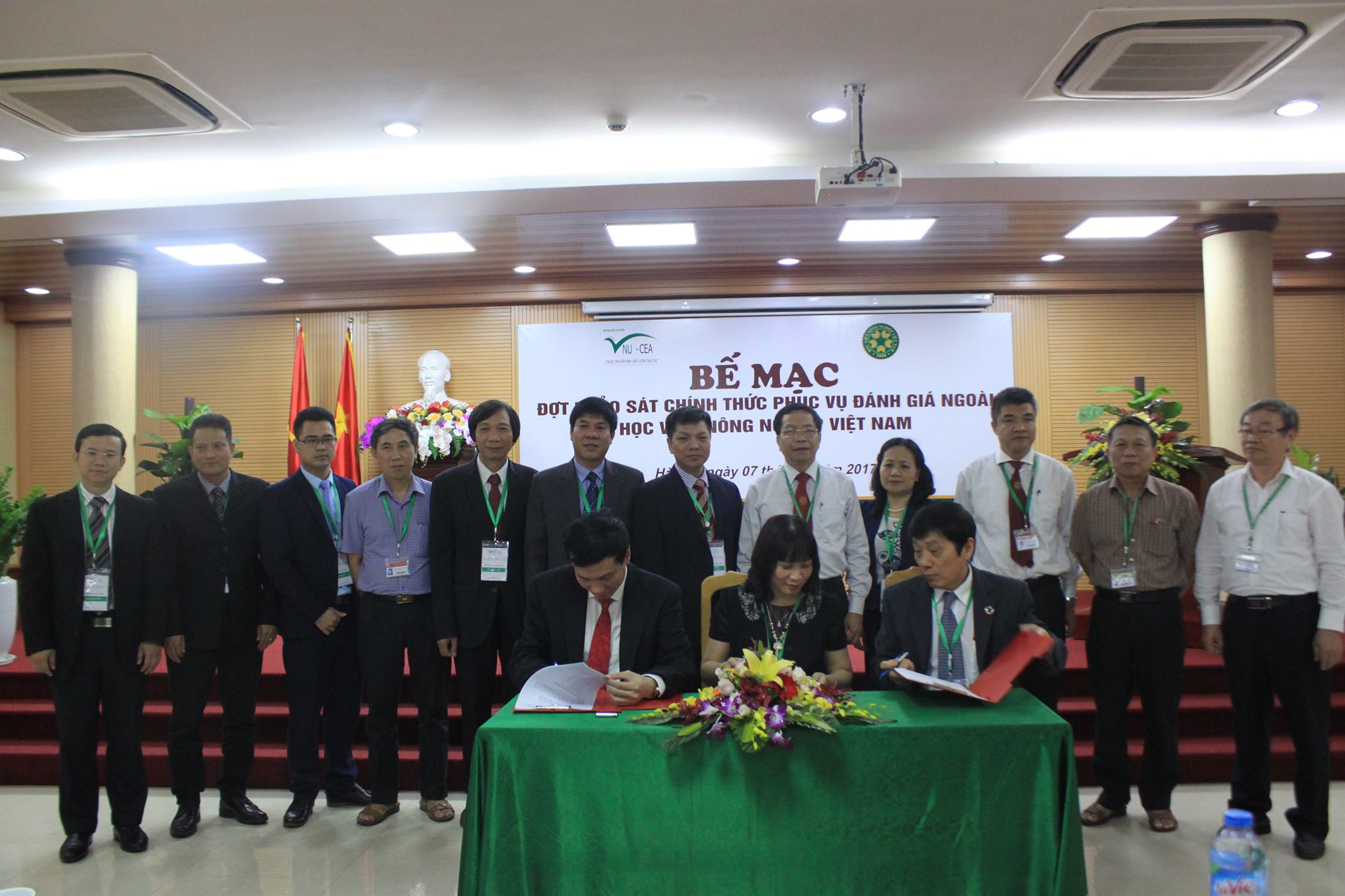 Kết thúc phiên bế mạc, Giám đốc Trung tâm Kiểm định chất lượng giáo dục - Đại học Quốc gia Hà Nội, Trưởng đoàn chuyên gia đánh giá ngoài và Giám đốc Học viện Nông nghiệp Việt Nam đã ký biên bản hoàn thành đợt khảo sát chính thức phục vụ đánh giá chất lượng Học viện.