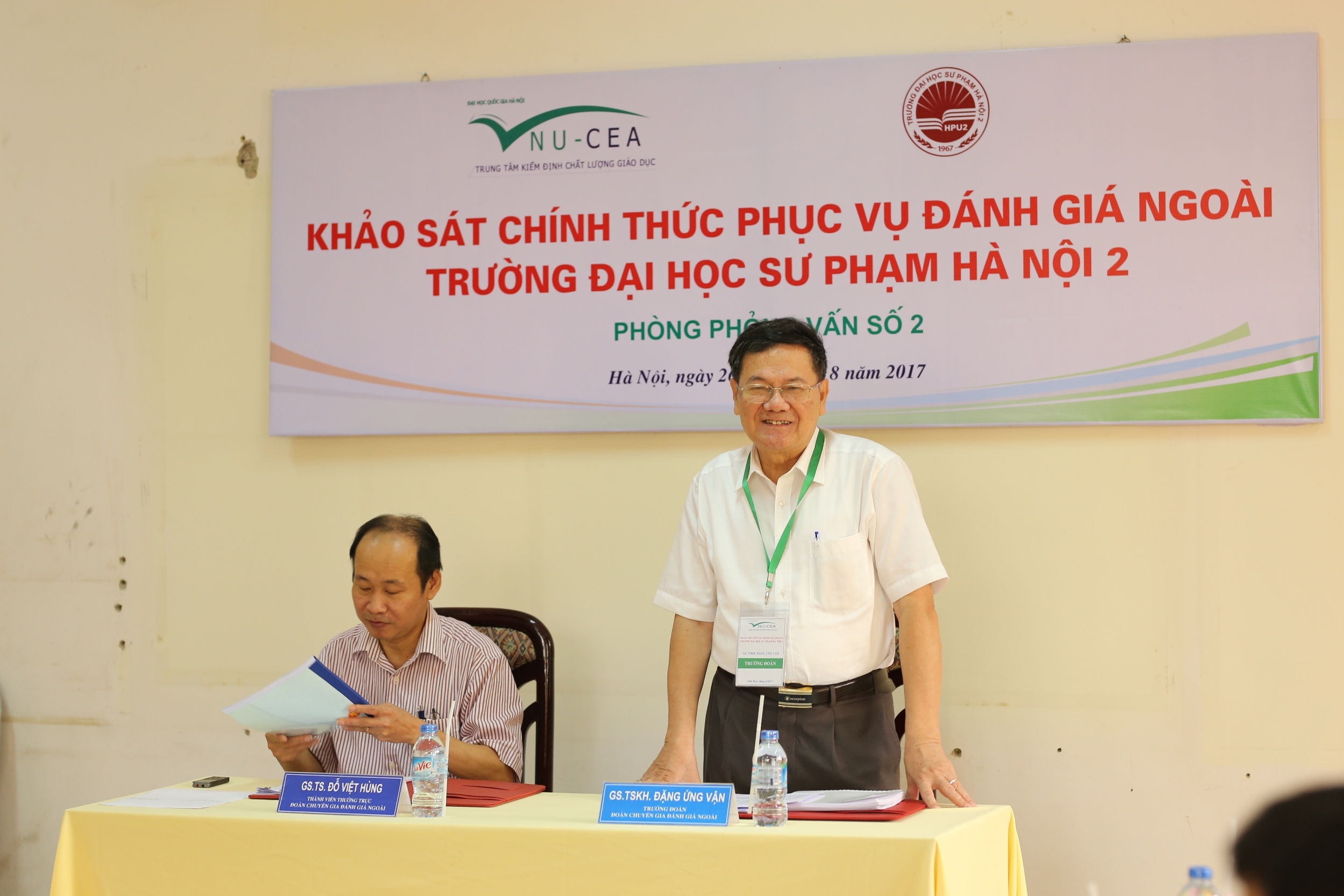 Sáng ngày 26/8/2017, Trung tâm Kiểm định chất lượng giáo dục - Đại học Quốc gia Hà Nội (KĐCLGD-ĐHQGHN) đã phối hợp với Trường Đại học Sư phạm Hà Nội 2 tổ chức lễ khai mạc khảo sát chính thức phục vụ đánh giá ngoài Trường Đại học Sư phạm Hà Nội 2 theo tiêu chuẩn đánh giá chất lượng trường đại học của Bộ Giáo dục và Đào tạo.
