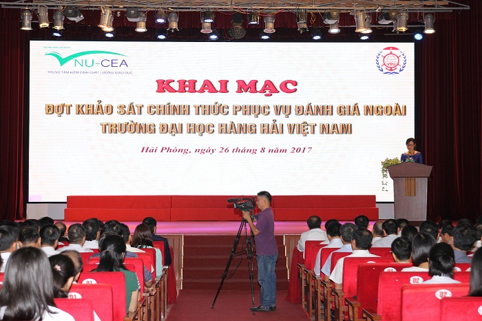 Chiều ngày 26/8/2017, Trung tâm Kiểm định chất lượng giáo dục - Đại học Quốc gia Hà Nội (KĐCLGD-ĐHQGHN) đã phối hợp với Trường Đại học Hàng hải Việt Nam tổ chức lễ khai mạc khảo sát chính thức phục vụ đánh giá ngoài Trường Đại học Hàng hải Việt Nam theo tiêu chuẩn đánh giá chất lượng trường đại học của Bộ Giáo dục và Đào tạo.