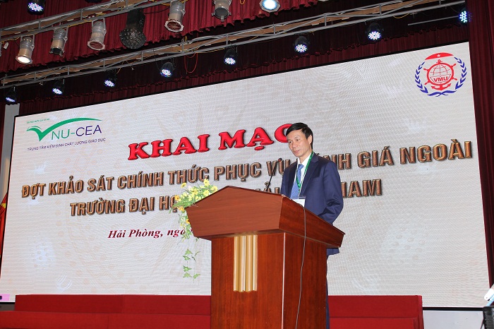 Phát biểu Khai mạc đánh giá ngoài Trường Đại học Hàng hải Việt Nam, GS.TS. Nguyễn Quý Thanh - Giám đốc tiếp tục khẳng định tầm quan trọng của việc đánh giá ngoài; khẳng định mục đích chính của kiểm định chất lượng giáo dục là nhằm đảm bảo đạt được những chuẩn mực nhất định trong đào tạo và không ngừng cải tiến, nâng cao chất lượng đào tạo, đáp ứng yêu cầu của người sử dụng nguồn nhân lực và đảm bảo quyền lợi cho người học. Giám đốc cũng đánh giá cao sự phối hợp chặt chẽ của Trường Đại học Hàng hải Việt Nam với Trung tâm KĐCLGD-ĐHQGHN trong quá trình chuẩn bị cho đợt khảo sát chính thức và đề nghị Nhà trường tiếp tục hỗ trợ Đoàn chuyên gia đánh giá ngoài trong quá trình triển khai các hoạt động KĐCLGD. Đồng thời, Giám đốc đề nghị Đoàn chuyên gia đánh giá ngoài thực hiện các hoạt động đánh giá khách quan, trung thực, công bằng.