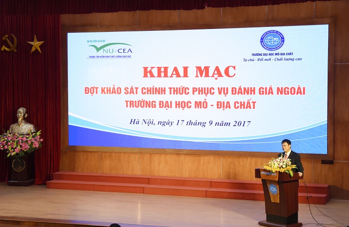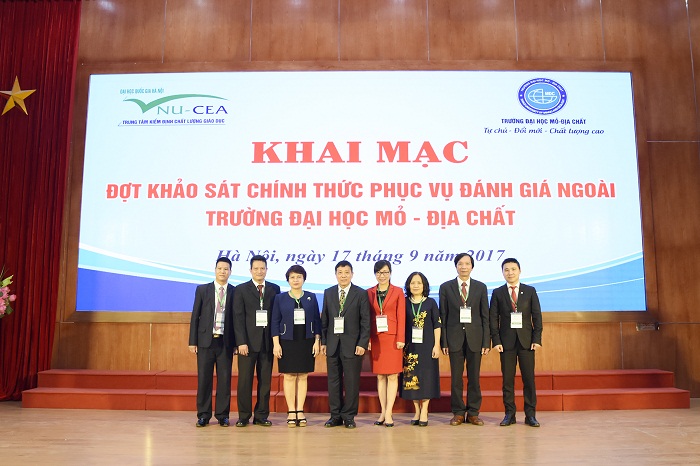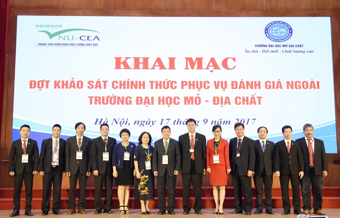 Ngày 17/9/2017, Trung tâm Kiểm định chất lượng giáo dục - Đại học Quốc gia Hà Nội (KĐCLGD-ĐHQGHN) đã phối hợp với Trường Đại học Mỏ-Địa chất tổ chức Lễ khai mạc đợt khảo sát chính thức phục vụ đánh giá ngoài (ĐGN) Trường Đại học Mỏ-Địa chất theo tiêu chuẩn đánh giá chất lượng trường đại học của Bộ Giáo dục và Đào tạo.