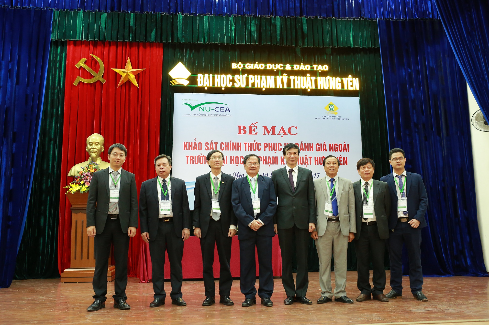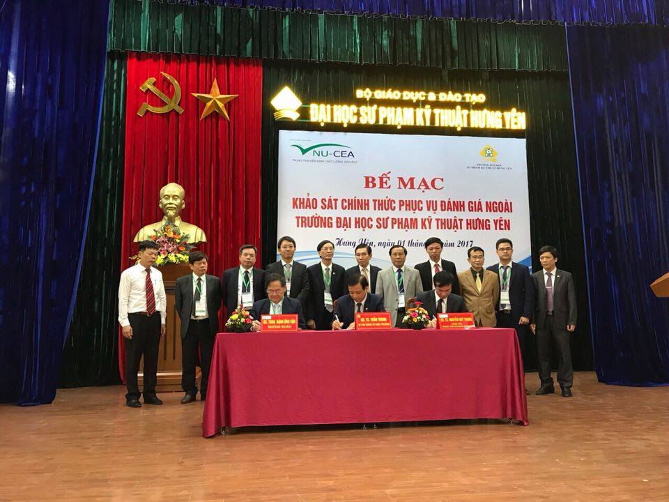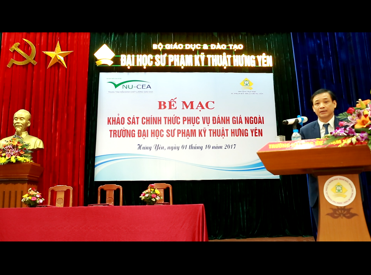 Sau 5 ngày khảo sát chính thức, sáng ngày 01/10/2017, Trung tâm Kiểm định chất lượng giáo dục - Đại học Quốc gia Hà Nội (KĐCLGD-ĐHQGHN) đã phối hợp với Trường ĐH Sư phạm Kỹ thuật Hưng Yên tổ chức bế mạc đợt khảo sát chính thức phục vụ đánh giá ngoài (ĐGN) Trường ĐH Sư phạm Kỹ thuật Hưng Yên. Đây là trường ĐH thứ 34 trong số các trường ĐH do Trung tâm KĐCLGD-ĐHQGHN tổ chức đánh giá đã hoàn thành đánh giá ngoài.
