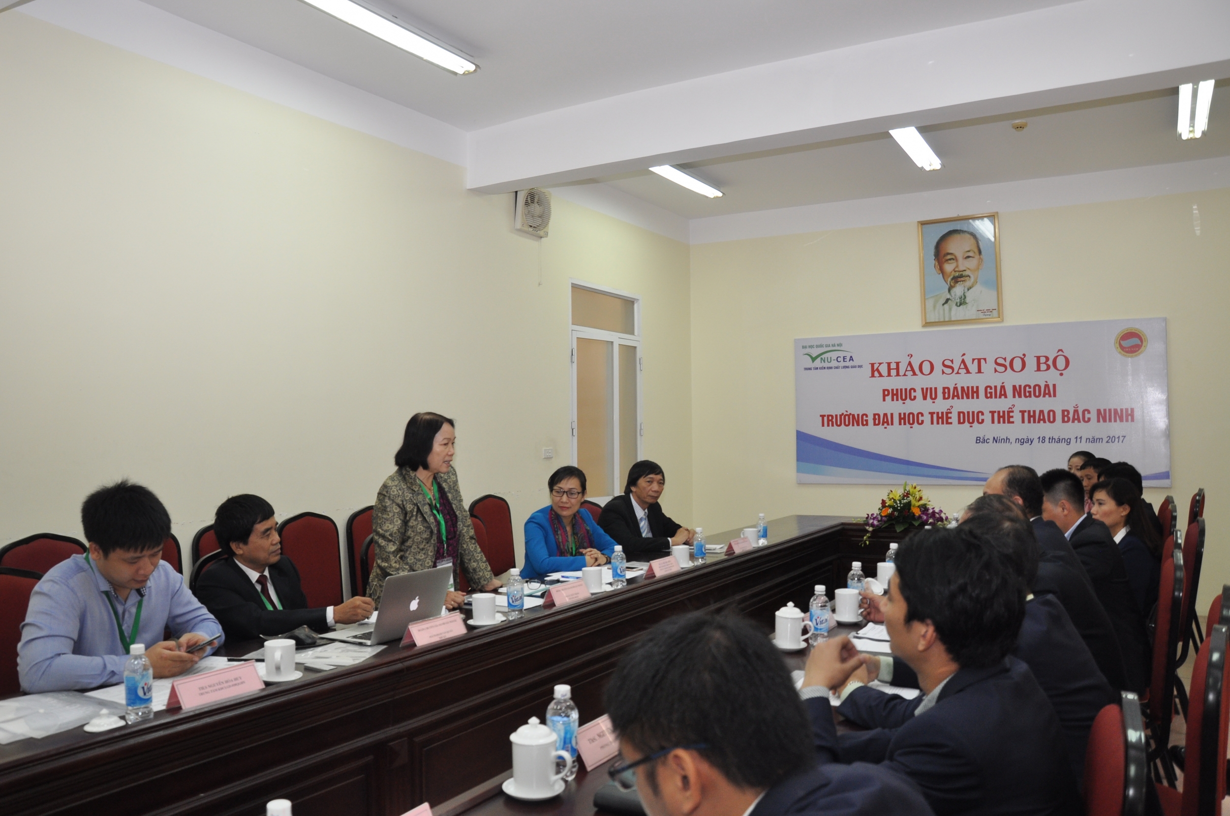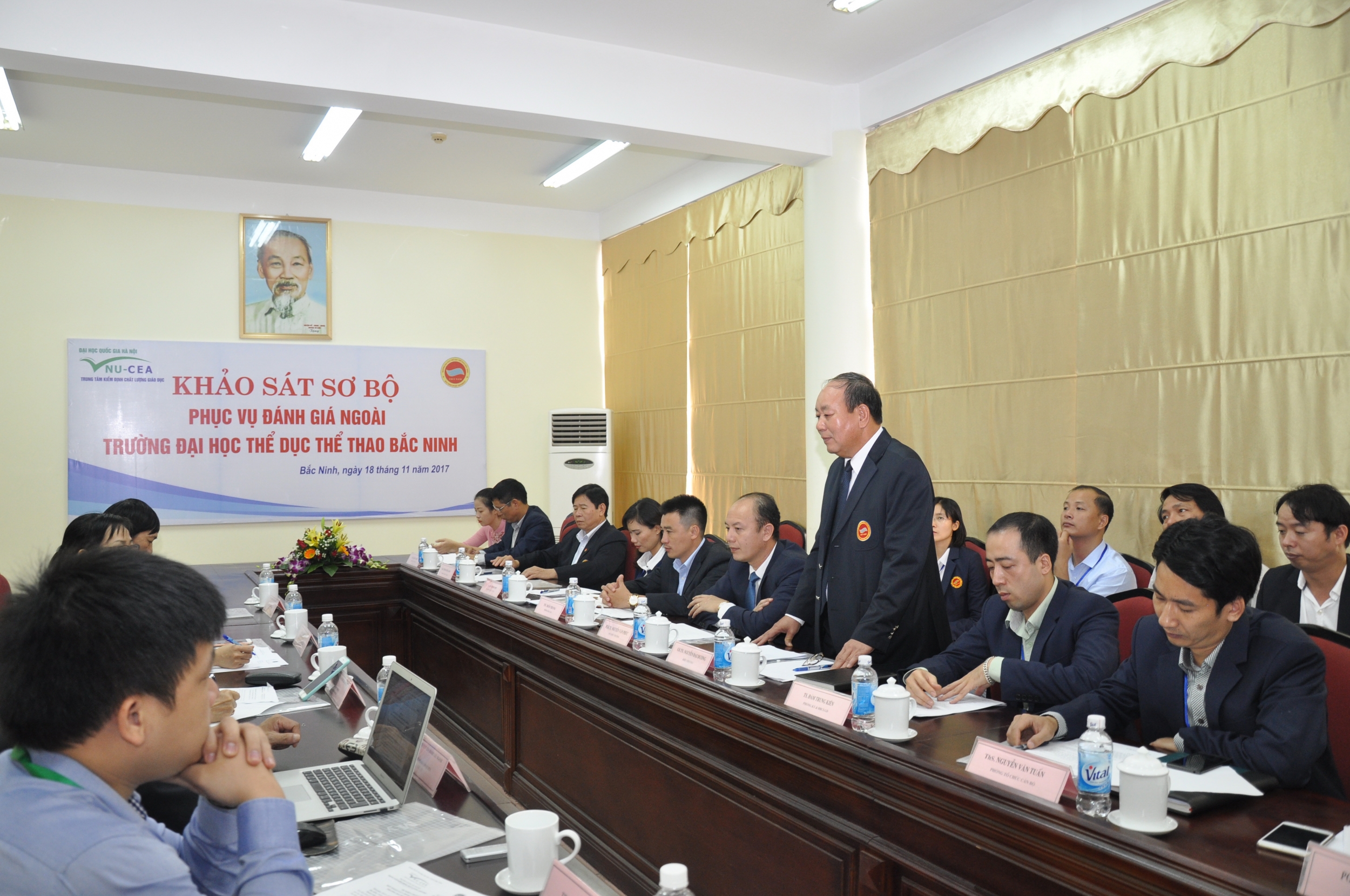 Sáng ngày 18/11/2017, Đoàn chuyên gia đánh giá ngoài (ĐGN) của Trung tâm Kiểm định chất lượng giáo dục - Đại học Quốc gia Hà Nội (KĐCLGD – ĐHQGHN) đã tiến hành khảo sát sơ bộ tại Trường ĐH Thể dục thể thao Bắc Ninh để chuẩn bị cho đợt khảo sát chính thức Nhà trường theo quy trình đánh giá chất lượng trường đại học của Bộ Giáo dục và Đào tạo.