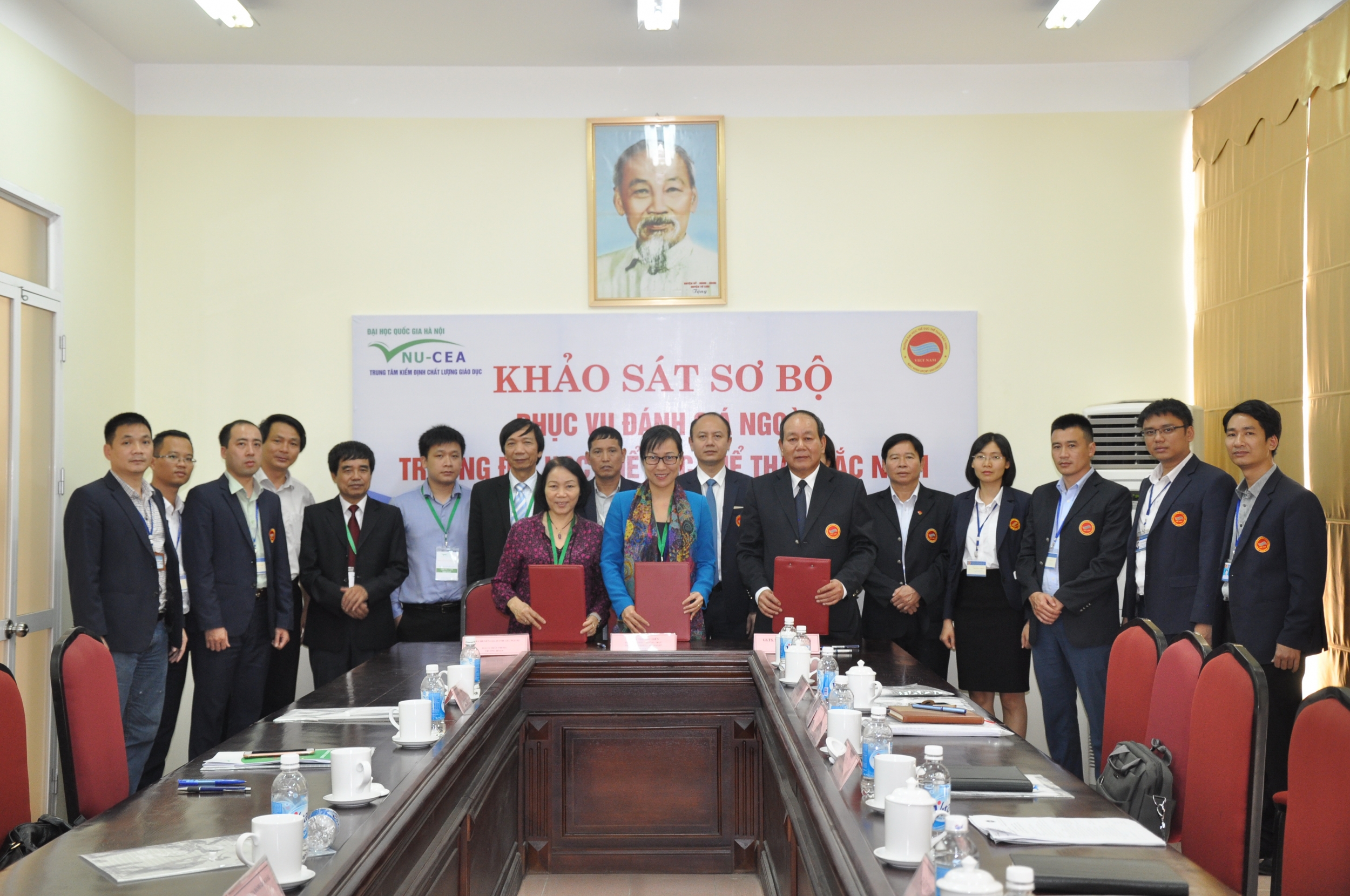Kết thúc đợt khảo sát sơ bộ, Phó Giám đốc phụ trách Trung tâm KĐCLGD – ĐHQGHN, Trưởng đoàn chuyên gia ĐGN và Hiệu trưởng Trường ĐH Thể dục thể thao Bắc Ninh đã ký Biên bản hoàn thành khảo sát sơ bộ.Theo sự thống nhất, thời gian khảo sát chính thức của Đoàn chuyên gia ĐGN tại Trường Đại học Thể dục thể thao Bắc Ninh sẽ được diễn ra từ ngày 16/12/2017 đến ngày 20/12/2017.