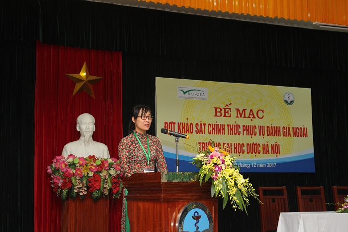 Phát biểu tại buổi bế mạc, TS. Tạ Thị Thu Hiền - Phó Giám đốc phụ trách Trung tâm KĐCLGD-ĐHQGHN một lần nữa khẳng định tầm quan trọng của công tác kiểm định chất lượng giáo dục trong việc nâng cao chất lượng của Nhà trường, đồng thời đánh giá cao tinh thần làm việc đầy trách nhiệm và trí tuệ của các thành viên Đoàn chuyên gia ĐGN trong quá trình nghiên cứu hồ sơ minh chứng, khảo sát sơ bộ và khảo sát chính thức để đưa ra những nhận định, đánh giá và khuyến nghị cải tiến chất lượng đối với Nhà trường. Phó Giám đốc cũng cám ơn Trường ĐH Dược Hà Nội đã hỗ trợ, tạo điều kiện và đáp ứng các yêu cầu cung cấp thông tin, minh chứng phục vụ cho quá trình đánh giá của Đoàn.