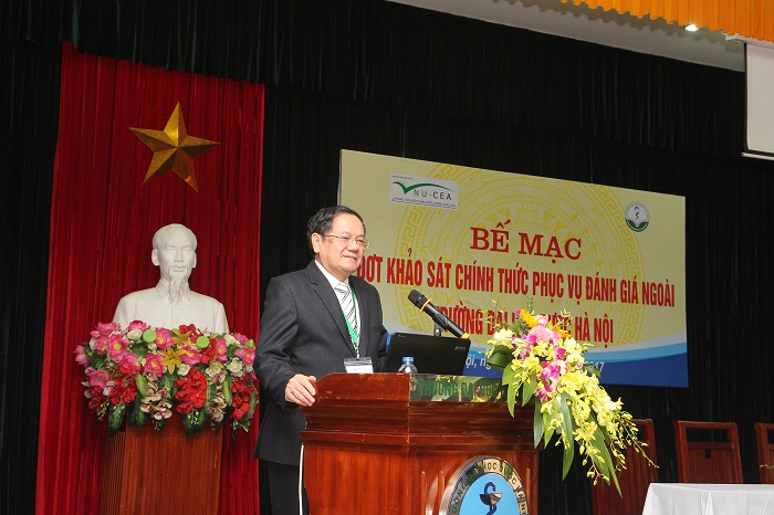 Thay mặt Đoàn chuyên gia ĐGN, GS.TSKH. Đặng Ứng Vận - Trưởng đoàn đã trình bày báo cáo sơ bộ kết quả khảo sát chất lượng giáo dục Trường ĐH Dược Hà Nội theo bộ tiêu chuẩn của Bộ Giáo dục và Đào tạo. Báo cáo của Đoàn đã nêu rõ những điểm mạnh và những vấn đề Nhà trường cần cải tiến chất lượng bám sát các tiêu chí đánh giá chất lượng trường đại học, đồng thời Đoàn cũng đưa ra những khuyến nghị để cải tiến chất lượng trong thời gian tới.