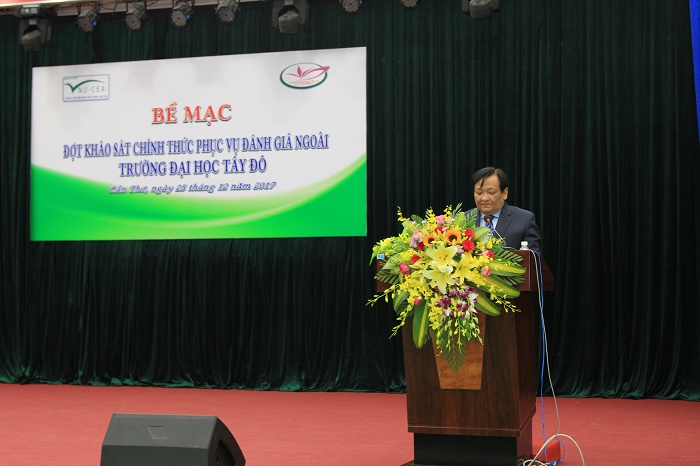 Sau 5 ngày khảo sát chính thức, sáng ngày 25/12/2017, Trung tâm Kiểm định chất lượng giáo dục - Đại học Quốc gia Hà Nội (KĐCLGD-ĐHQGHN) đã phối hợp với Trường Đại học Tây Đô tổ chức bế mạc đợt khảo sát chính thức phục vụ đánh giá ngoài (ĐGN) Trường Đại học Tây Đô. Đây là trường thứ 43 trong số các trường ĐH do Trung tâm KĐCLGD-ĐHQGHN tổ chức đánh giá đã hoàn thành đánh giá ngoài.