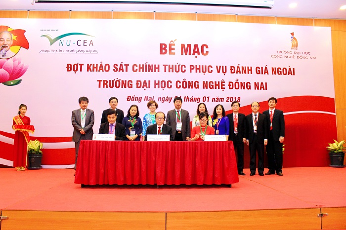 Sau 5 ngày khảo sát chính thức, sáng ngày 21/1/2018, Trung tâm Kiểm định chất lượng giáo dục - Đại học Quốc gia Hà Nội (KĐCLGD-ĐHQGHN) đã phối hợp với Trường Đại học Công nghệ Đồng Nai tổ chức bế mạc đợt khảo sát chính thức phục vụ đánh giá ngoài (ĐGN) Trường Đại học Công nghệ Đồng Nai. Đây là cơ sở giáo dục thứ 45 trong số các cơ sở giáo dục do Trung tâm KĐCLGD-ĐHQGHN tổ chức đánh giá đã hoàn thành đánh giá ngoài.