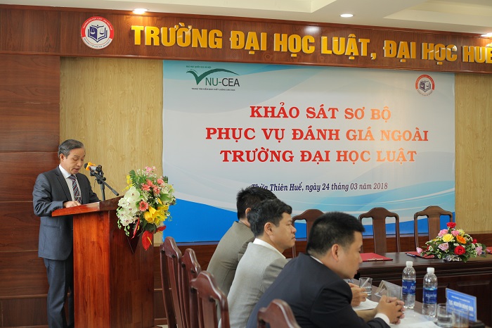 Sáng ngày 24/3/2018, Đoàn chuyên gia đánh giá ngoài (ĐGN) của Trung tâm Kiểm định chất lượng giáo dục - Đại học Quốc gia Hà Nội (KĐCLGD - ĐHQGHN) đã tiến hành khảo sát sơ bộ tại Trường Đại học Luật, Đại học Huế để chuẩn bị cho đợt khảo sát chính thức Nhà trường theo quy định của Bộ Giáo dục và Đào tạo.