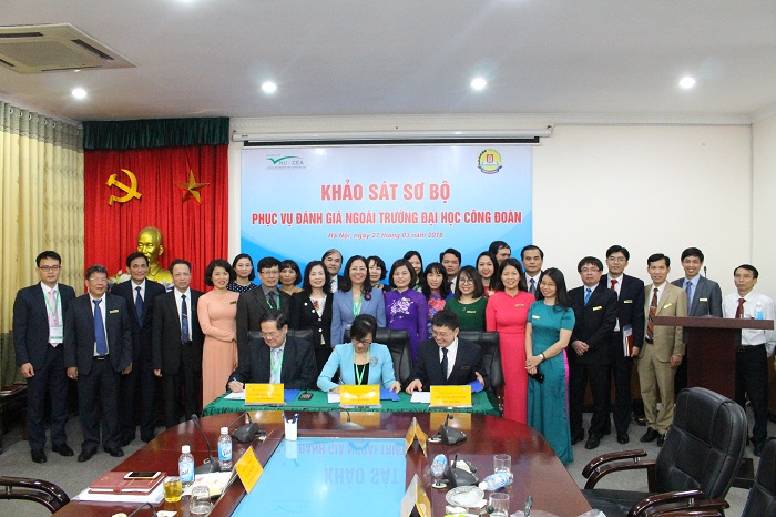 Sáng ngày 27/3/2018, Đoàn chuyên gia đánh giá ngoài (ĐGN) của Trung tâm Kiểm định chất lượng giáo dục - Đại học Quốc gia Hà Nội (KĐCLGD - ĐHQGHN) đã tiến hành khảo sát sơ bộ tại Trường Đại học Công đoàn để chuẩn bị cho đợt khảo sát chính thức Nhà trường theo quy định của Bộ Giáo dục và Đào tạo.