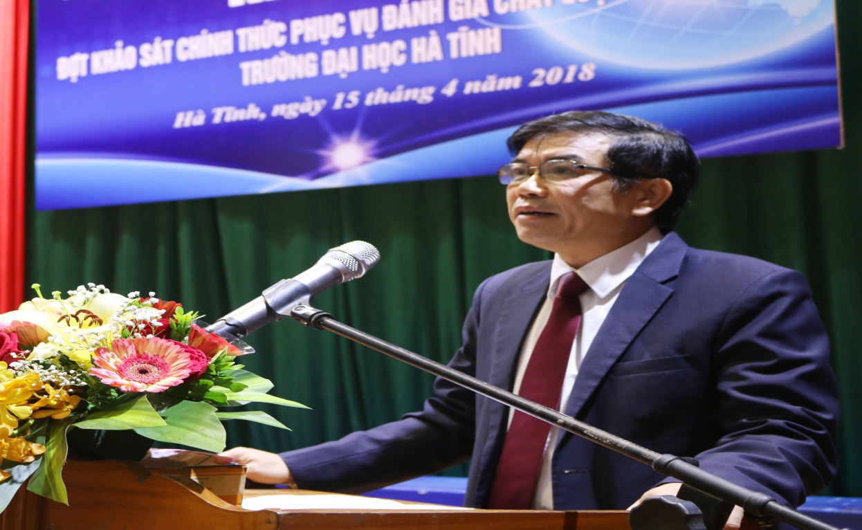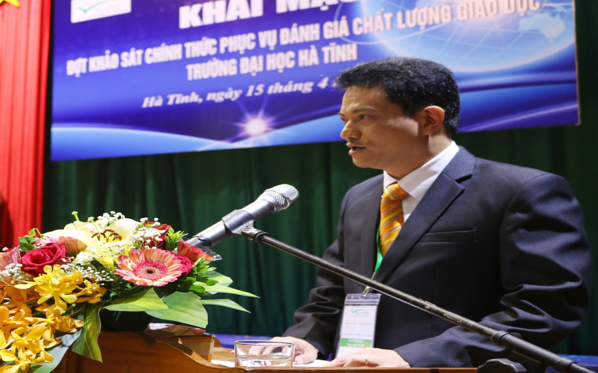 Phát biểu tại Lễ khai mạc, Ông Đặng Quốc Vinh - Ủy viên Ban Thường vụ Tỉnh ủy, Phó Chủ tịch UBND tỉnh Hà Tĩnh khẳng định, UBND tỉnh Hà Tĩnh luôn dành sự quan tâm, ưu tiên, tạo điều kiện tốt nhất và luôn đồng hành cùng Trường Đại học Hà Tĩnh nhằm đào tạo nguồn nhân lực phục vụ cho sự nghiệp phát triển kinh tế của tỉnh, đồng thời kính mong Đoàn chuyên gia đánh giá ngoài đánh giá khách quan, công bằng nhằm giúp Nhà trường rà soát tổng thể các hoạt động, từ đó đề ra những phương hướng, mục tiêu, chiến lược cụ thể để phát triển Nhà trường ngày càng lớn mạnh hơn.