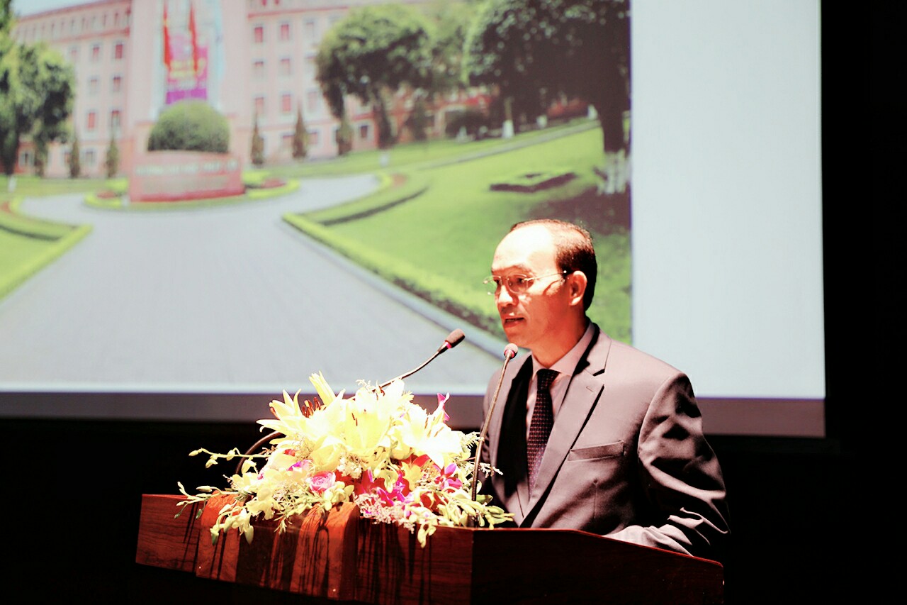 PGS.TS. Phạm Văn Hà - Hiệu trưởng Trường Đại học Công đoàn báo cáo tại Lễ khai mạc