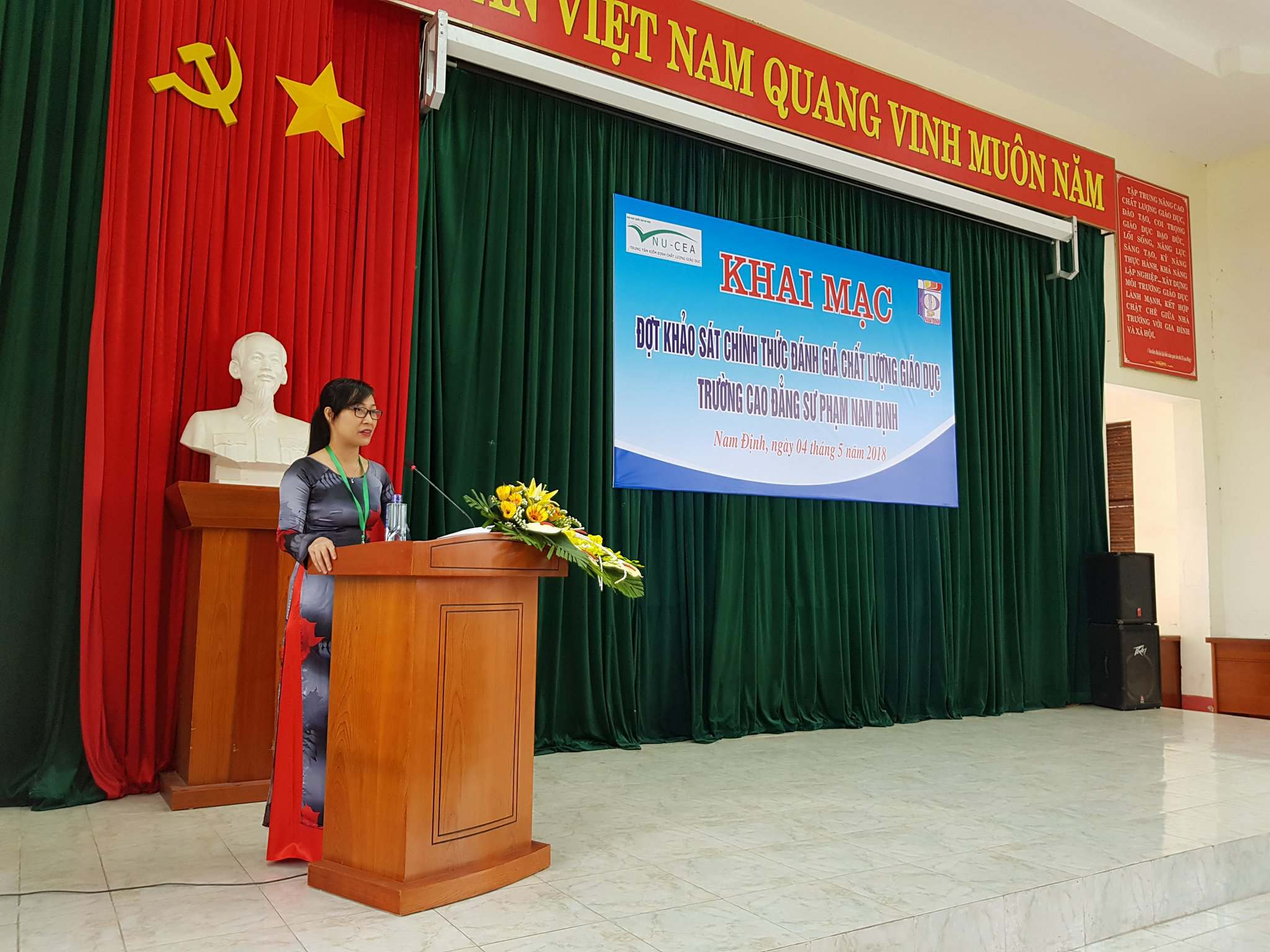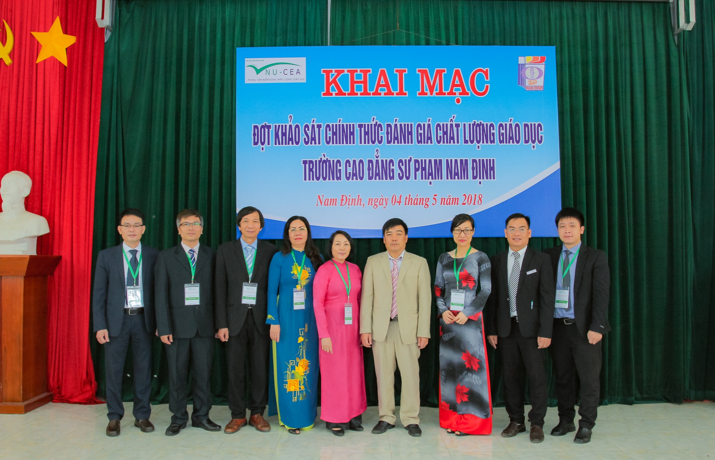 Sáng ngày 4/5/2018, Trung tâm Kiểm định chất lượng giáo dục - Đại học Quốc gia Hà Nội (KĐCLGD-ĐHQGHN) đã phối hợp với Trường Cao đẳng Sư phạm Nam Định tổ chức khai mạc đợt khảo sát chính thức phục vụ đánh giá ngoài Trường Cao đẳng Sư phạm Nam Định theo tiêu chuẩn đánh giá chất lượng trường cao đẳng của Bộ Giáo dục và Đào tạo.