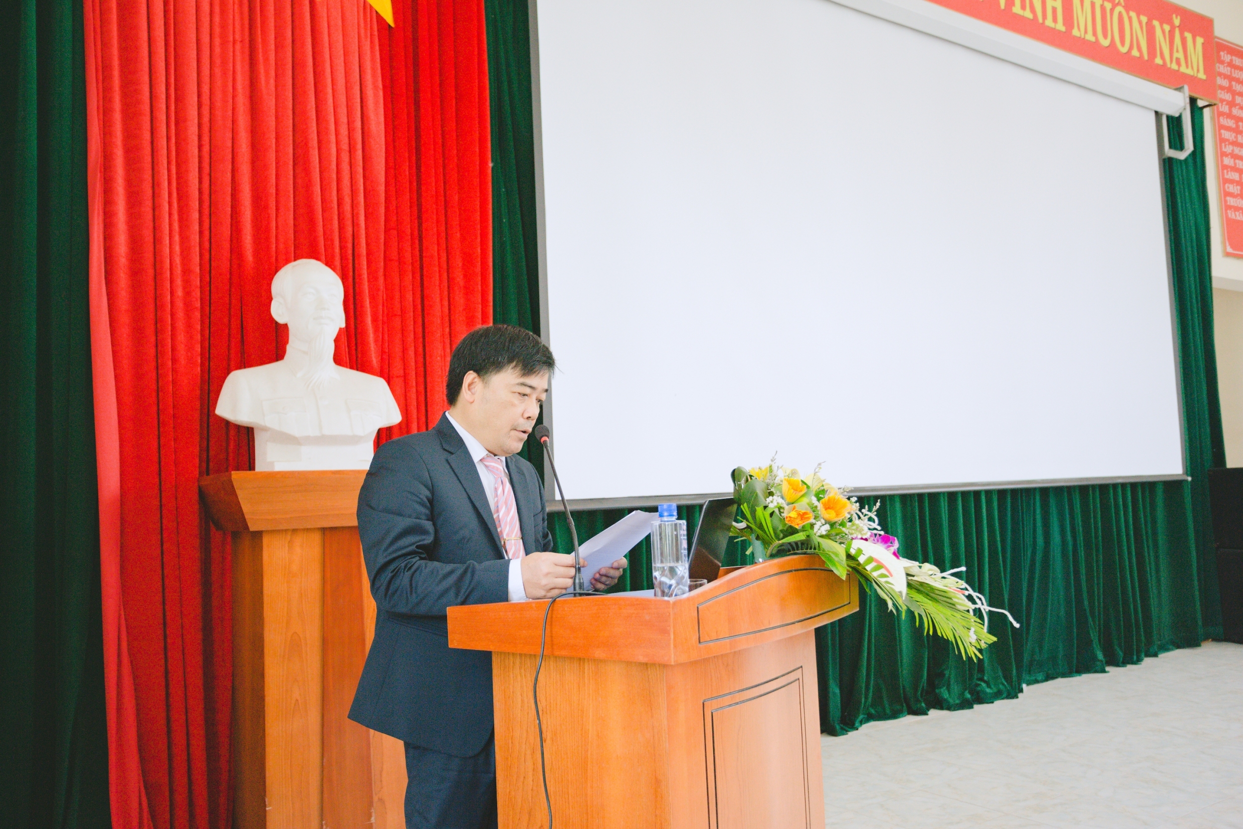 ThS. Trần Ngọc Hiển - Hiệu trưởng Nhà trường phát biểu