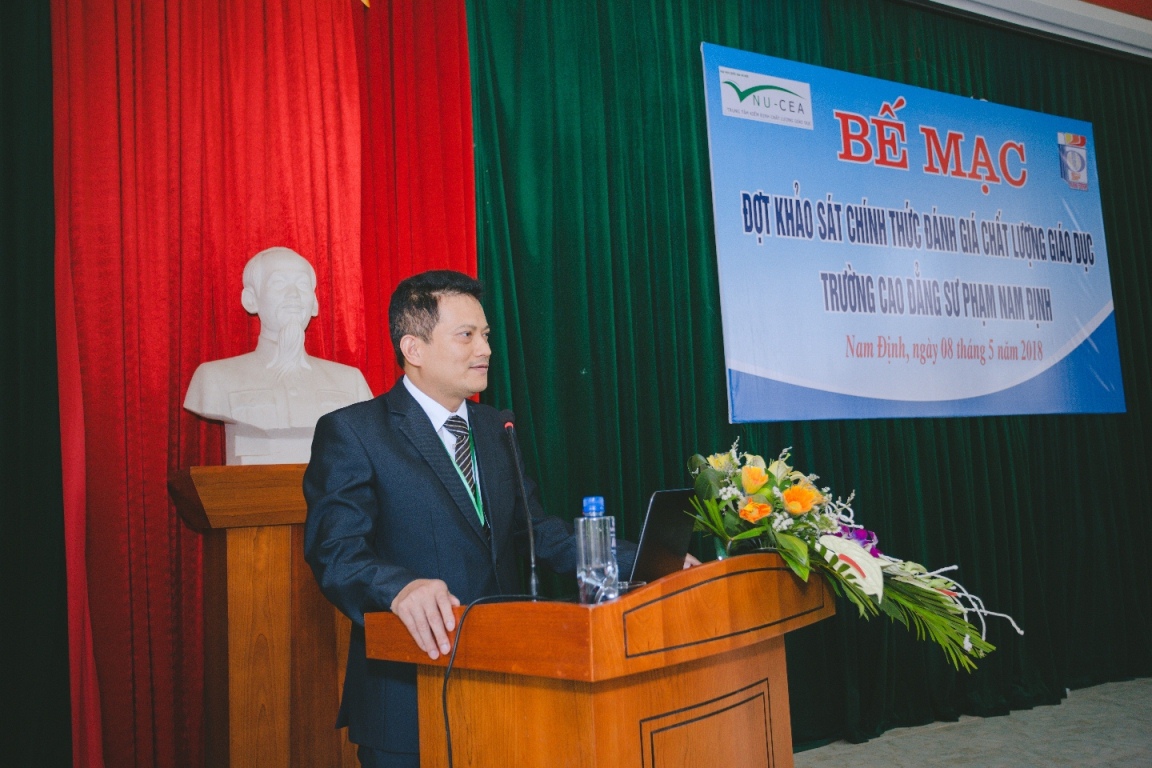 Thay mặt lãnh đạo Sở Giáo dục và Đào tạo Nam Định, Ông Ngô Vỹ Nông - Phó Giám đốc gửi lời cảm ơn tới Đoàn chuyên gia ĐGN, Trung tâm KĐCLGD-ĐHQGHN, tất cả các cán bộ, giảng viên của Trường Cao đẳng Sư phạm Nam Định đã tham gia nhiệt tình và hợp tác hết mình trong đợt đánh giá ngoài lần này. Đồng thời hoan nghênh tinh thần cố gắng của Nhà trường trong quá trình tự đánh giá và đánh giá ngoài để khẳng định uy tín, vị thế của nhà trường, đồng thời cũng chia sẻ với những khó khăn mà nhà trường gặp phải và gợi mở những định hướng tháo gỡ trong thời gian tới.