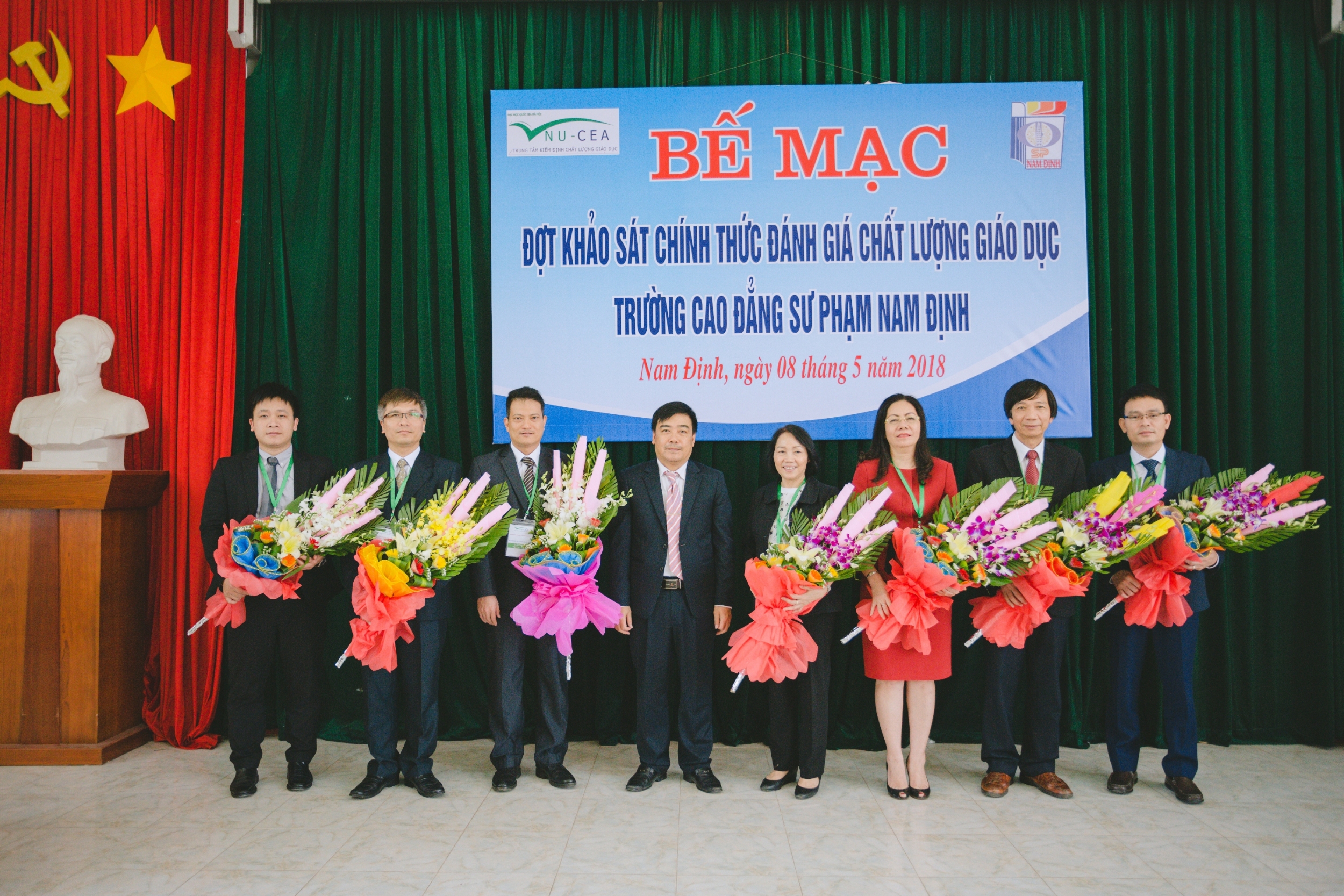 Sau 5 ngày khảo sát chính thức, sáng ngày 08/5/2018, Trung tâm Kiểm định chất lượng giáo dục - Đại học Quốc gia Hà Nội (KĐCLGD-ĐHQGHN) đã phối hợp với Trường Cao đẳng Sư phạm Nam Định tổ chức bế mạc đợt khảo sát chính thức phục vụ đánh giá ngoài (ĐGN) Trường Cao đẳng Sư phạm Nam Định. Đây là cơ sở giáo dục thứ 53 trong số các cơ sở giáo dục do Trung tâm KĐCLGD-ĐHQGHN tổ chức đánh giá.