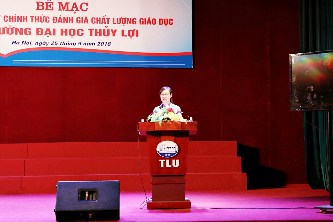 Phát biểu tại buổi bế mạc,TS. Tạ Thị Thu Hiền, Phó Giám đốc Trung tâm KĐCLGD-ĐHQGHN tiếp tục khẳng định tầm quan trọng của công tác kiểm định chất lượng giáo dục trong việc nâng cao chất lượng của Nhà trường, đồng thời đánh giá cao tinh thần làm việc đầy trách nhiệm và trí tuệ của các thành viên Đoàn chuyên gia ĐGN trong quá trình nghiên cứu hồ sơ minh chứng, khảo sát sơ bộ và khảo sát chính thức để đưa ra những nhận định, đánh giá và khuyến nghị cải tiến chất lượng đối với Nhà trường, đồng thời cảm ơn Trường Đại học Thủy Lợi đã hỗ trợ, tạo điều kiện và đáp ứng các yêu cầu cung cấp thông tin, minh chứng phục vụ cho quá trình đánh giá của Đoàn.