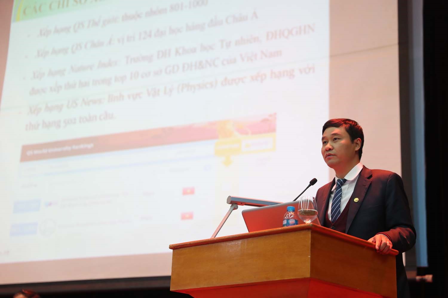 Phó Giám đốc ĐHQGHN Nguyễn Hoàng Hải trình bày Báo cáo tổng kết năm 2018