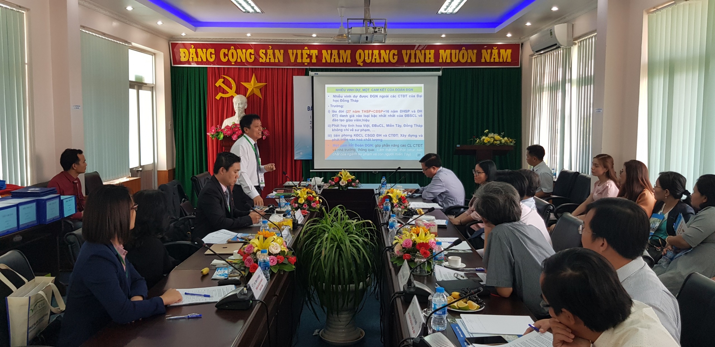 Ngày 17/3/2019, Trung tâm Kiểm định chất lượng giáo dục - Đại học Quốc gia Hà Nội (Trung tâm) đã phối hợp với Trường Đại học Đồng Tháp tổ chức đợt khảo sát sơ bộ đánh giá chất lượng 03 chương trình đào tạo trình độ đại học (Sư phạm Toán học, Sư phạm Hóa học và Giáo dục tiểu học) của Nhà trường.