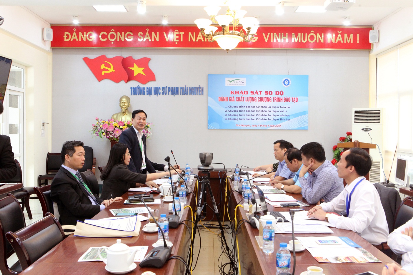 Ngày 4/4/2019, Trung tâm Kiểm định chất lượng giáo dục - Đại học Quốc gia Hà Nội (KĐCLGD-ĐHQGHN) đã phối hợp với Trường Đại học Sư phạm, Đại học Thái Nguyên (ĐHSP, ĐHTN) tổ chức khảo sát sơ bộ để đánh giá chất lượng 04 chương trình đào tạo đại học của Nhà trường (Cử nhân Sư phạm Toán học, Cử nhân Sư phạm Vật lý, Cử nhân Sư phạm Hóa học, Cử nhân Sư phạm Sinh học).