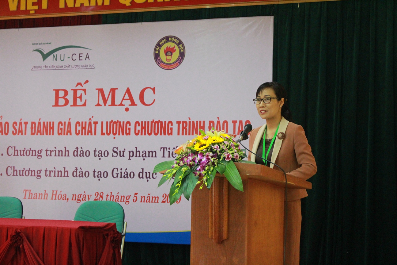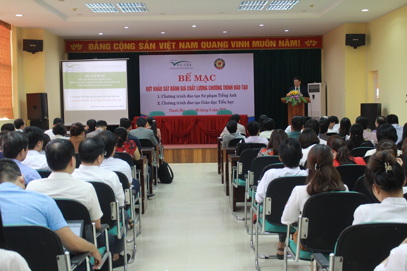 Sáng ngày 28/5/2019, tại Thanh Hóa, Trung tâm Kiểm định chất lượng giáo dục - Đại học Quốc gia Hà Nội (KĐCLGD-ĐHQGHN) đã phối hợp với Trường Đại học Hồng Đức tổ chức bế mạc khảo sát chính thức đánh giá chất lượng 02 chương trình đào tạo (Cử nhân Sư phạm tiếng Anh và Cử nhân Giáo dục tiểu học) của Nhà trường.
