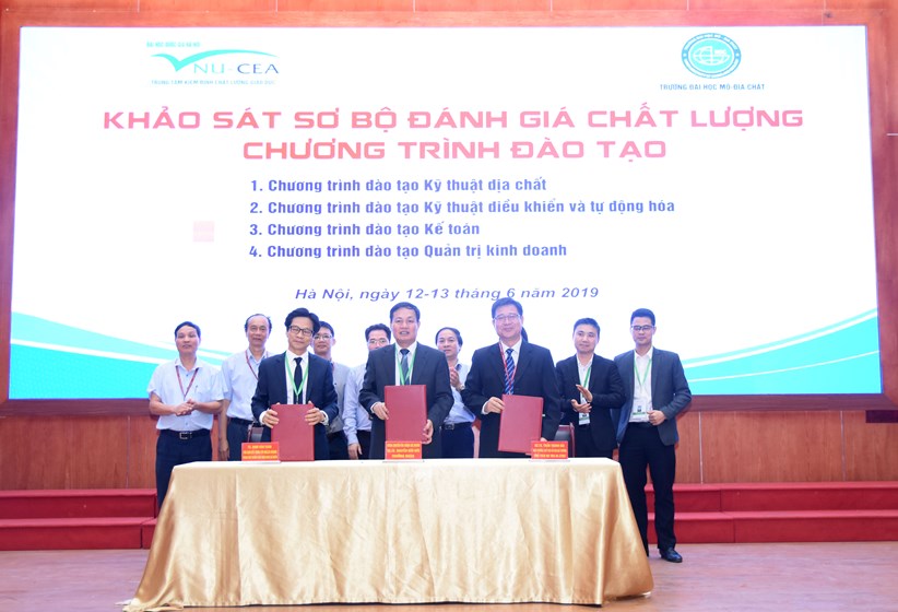 Từ ngày 12/6/2019 tới ngày 13/6/2019, Trung tâm Kiểm định chất lượng giáo dục - Đại học Quốc gia Hà Nội (KĐCLGD-ĐHQGHN) đã phối hợp với Trường Đại học Mỏ - Địa chất tổ chức khảo sát sơ bộ để đánh giá chất lượng 04 chương trình đào tạo đại học của Nhà trường tại cơ sở Hà Nội (Chương trình đào tạo Kỹ thuật địa chất, Chương trình đào tạo Kế toán, Chương trình đào tạo Quản trị kinh doanh, Chương trình đào tạo Kỹ thuật điều khiển và Tự động hóa) đồng thời Đoàn cũng khảo sát tại cơ sở Vũng Tàu cho Chương trình đào tạo Kỹ thuật điều khiển và Tự động hóa.