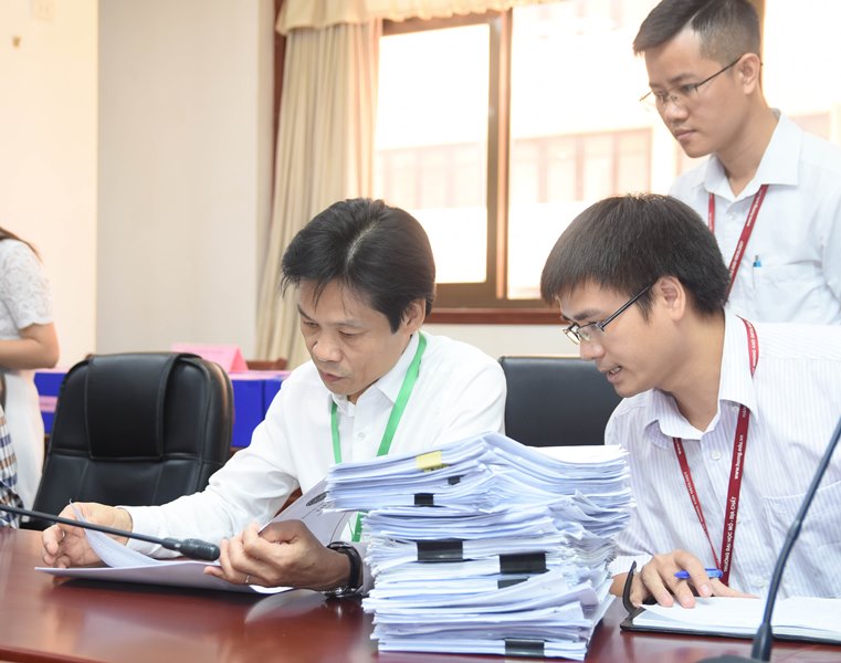 Thay mặt Đoàn chuyên gia ĐGN, GS.TS.NGND Nguyễn Hữu Đức - Trưởng đoàn đã báo cáo khái quát và TS. Nguyễn Thị Thu Hương - Thư ký đã báo cáo chi tiết kết quả nghiên cứu hồ sơ tự đánh giá 04 chương trình đào tạo. Đoàn chuyên gia ĐGN, Nhà trường và Trung tâm đã thảo luận và thống nhất về các minh chứng cần bổ sung, thành phần, số lượng đối tượng cần phỏng vấn, cơ sở vật chất cần chuẩn bị và các công tác hậu cần khác phục vụ đợt khảo sát chính thức sẽ diễn ra từ ngày 04-10/7/2019.