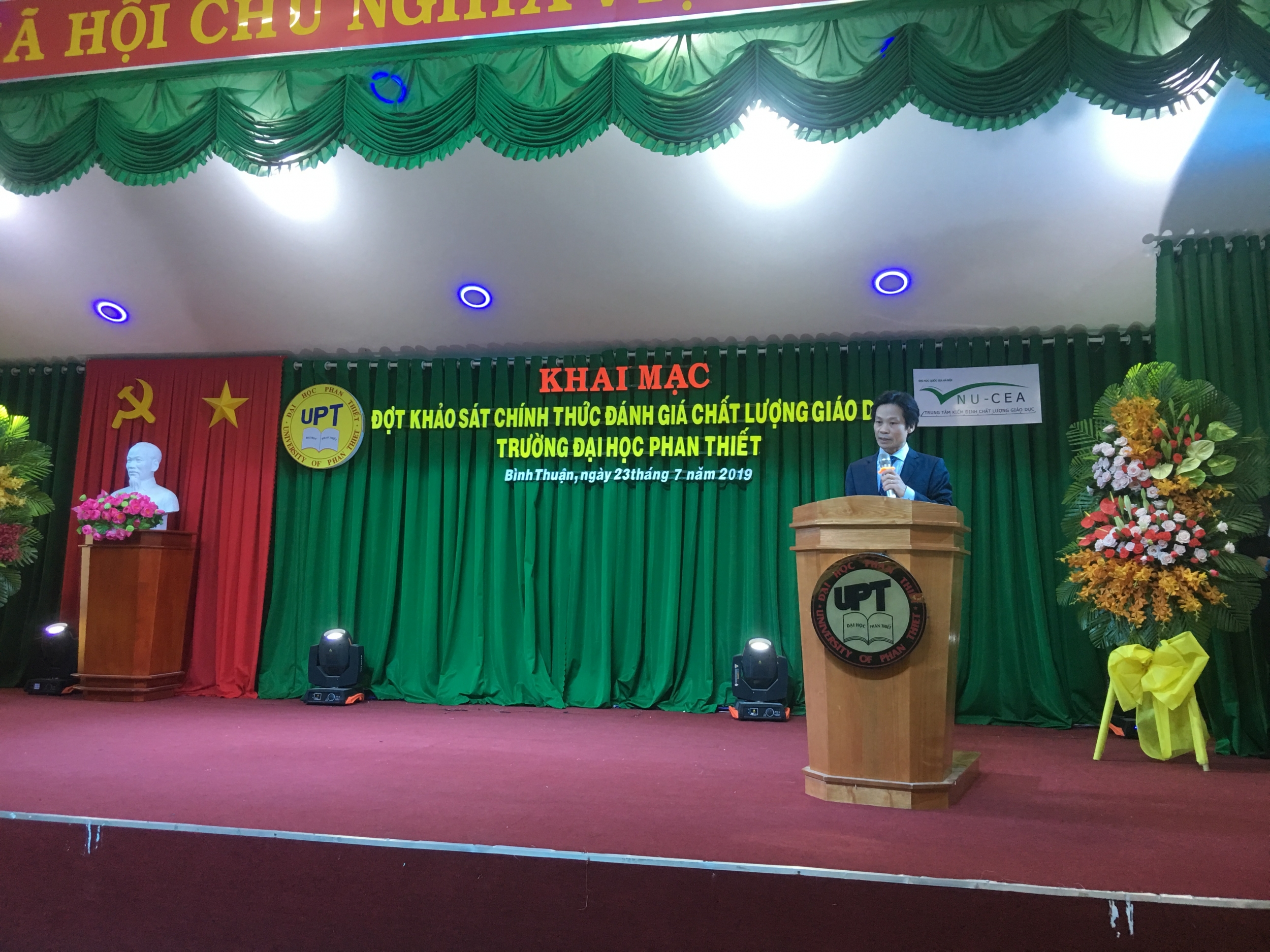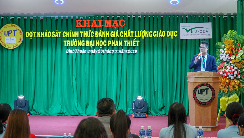 Sáng ngày 23/7/2019, Trung tâm Kiểm định chất lượng giáo dục - Đại học Quốc gia Hà Nội (KĐCLGD-ĐHQGHN) đã phối hợp với Trường Đại học Phan Thiết tổ chức khai mạc đợt khảo sát chính thức đánh giá chất lượng cơ sở giáo dục tại Trường Đại học Phan Thiết theo bộ tiêu chuẩn đánh giá chất lượng ban hành theo Thông tư số 12/2017/TT-BGDĐT ngày 19/5/2017 của Bộ Giáo dục và Đào tạo.