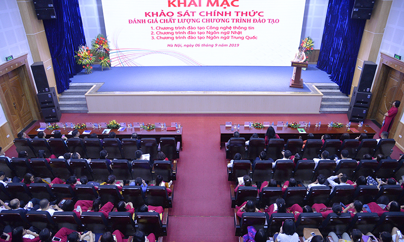 Sáng ngày 06/9/2019, Trung tâm Kiểm định chất lượng giáo dục - Đại học Quốc gia Hà Nội (KĐCLGD-ĐHQGHN) đã phối hợp với Trường Đại học Hà Nội tổ chức khai mạc đợt khảo sát chính thức đánh giá chất lượng 03 chương trình đào tạo chính quy trình độ đại học (Chương trình đào tạo Công nghệ thông tin, Chương trình đào tạo Ngôn ngữ Nhật và Chương trình đào tạo Ngôn ngữ Trung Quốc) tại Trường Đại học Hà Nội theo bộ tiêu chuẩn đánh giá chất lượng chương trình đào tạo ban hành theo Thông tư số 04/2016/TT-BGDĐT ngày 14/3/2016 của Bộ Giáo dục và Đào tạo.