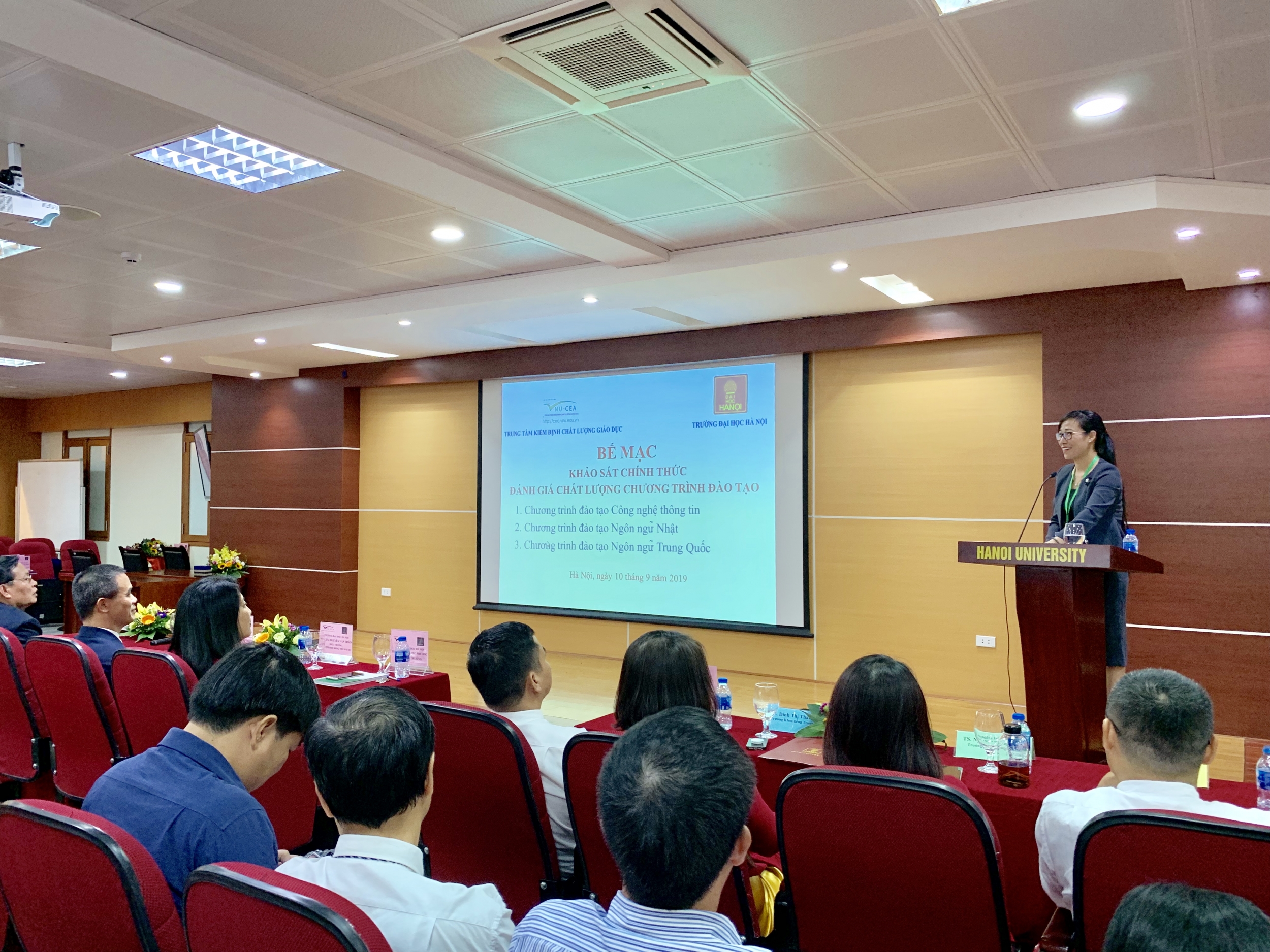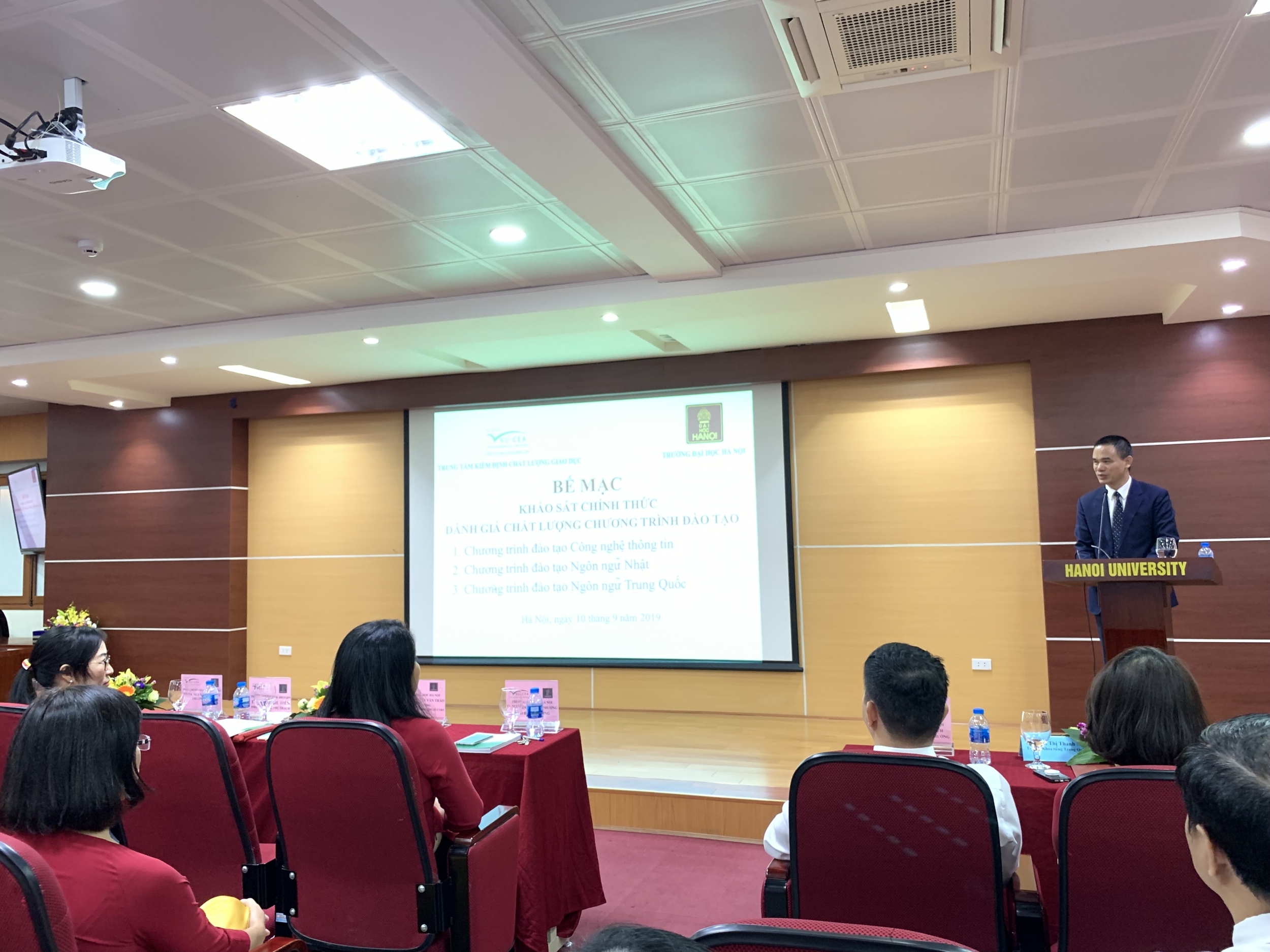 Sáng ngày 10/9/2019, Trung tâm Kiểm định chất lượng giáo dục - Đại học Quốc gia Hà Nội (KĐCLGD - ĐHQGHN) đã phối hợp với Trường Đại học Hà Nội tổ chức bế mạc khảo sát chính thức đánh giá chất lượng 03 chương trình đào tạo chính quy trình độ đại học của Nhà trường.