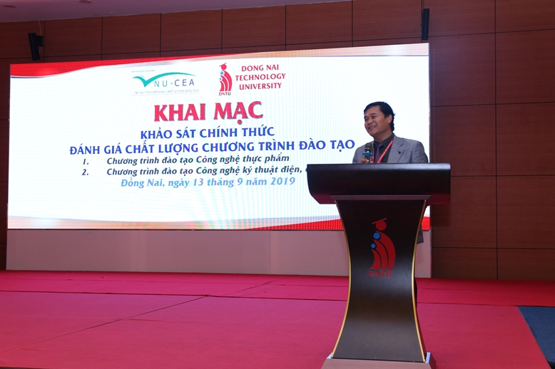 Sáng ngày 13/9/2019, Trung tâm Kiểm định chất lượng giáo dục - Đại học Quốc gia Hà Nội (KĐCLGD-ĐHQGHN) đã phối hợp với Trường Đại học Công nghệ Đồng Nai tổ chức khai mạc đợt khảo sát chính thức đánh giá chất lượng 02 chương trình đào tạo chính quy trình độ đại học (Chương trình đào tạo Công nghệ thực phẩm, Chương trình đào tạo Công nghệ Kỹ thuật Điện Điện tử) theo bộ tiêu chuẩn đánh giá chất lượng chương trình đào tạo ban hành theo Thông tư số 04/2016/TT-BGDĐT ngày 14/3/2016 của Bộ Giáo dục và Đào tạo.