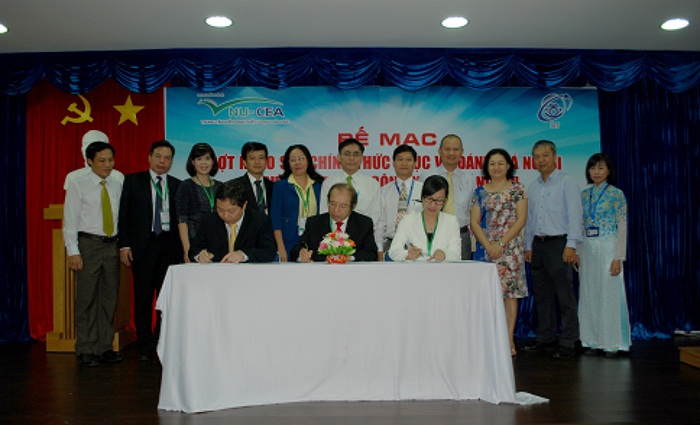 Phó GIám đốc TTKĐCLGD-ĐHQGHN, Trưởng đoàn ĐGN và Hiệu trưởng Trường ĐHCNTT,ĐHQG-HCM ký biên bản hoàn thành khảo sát chính thức