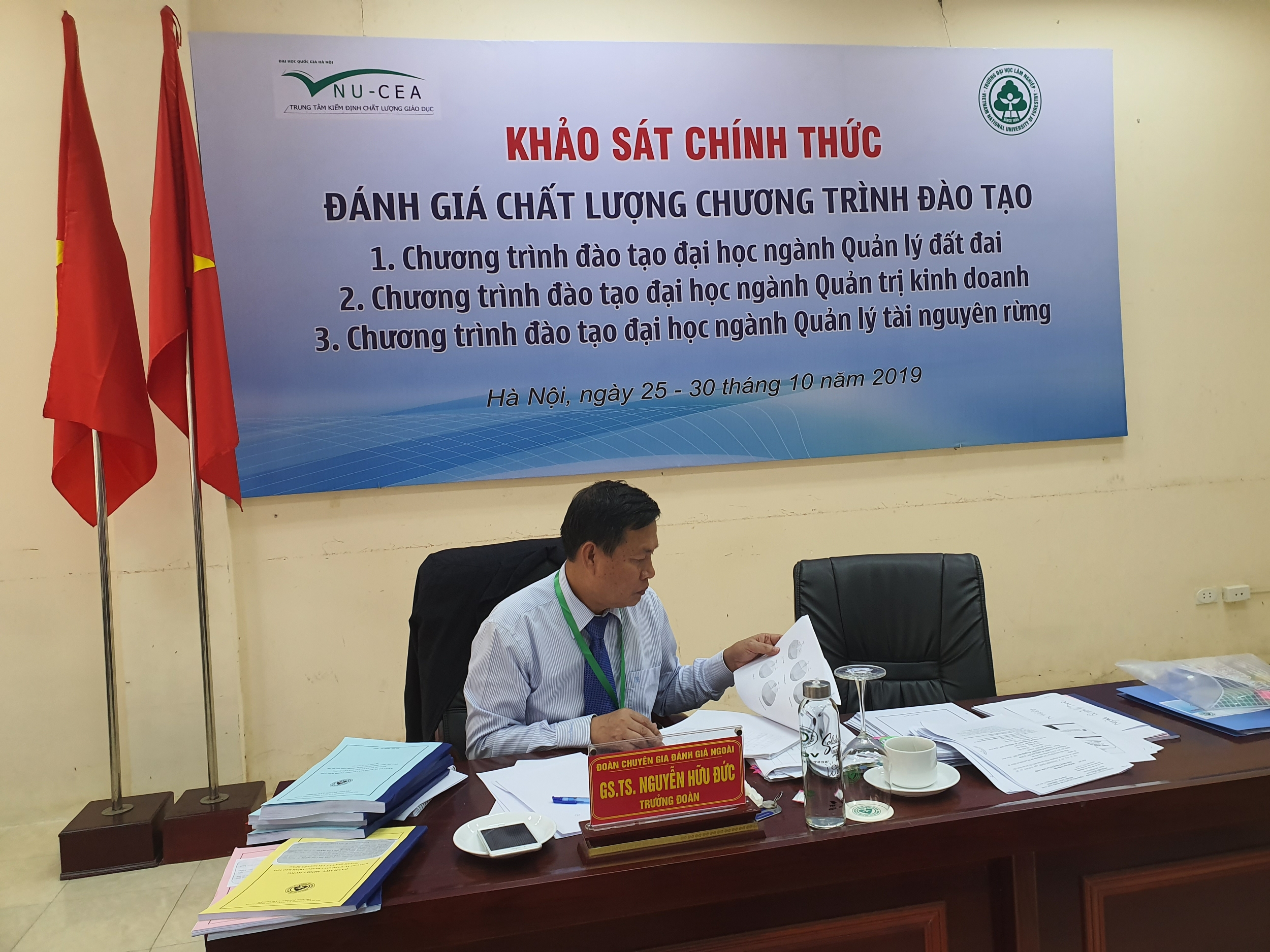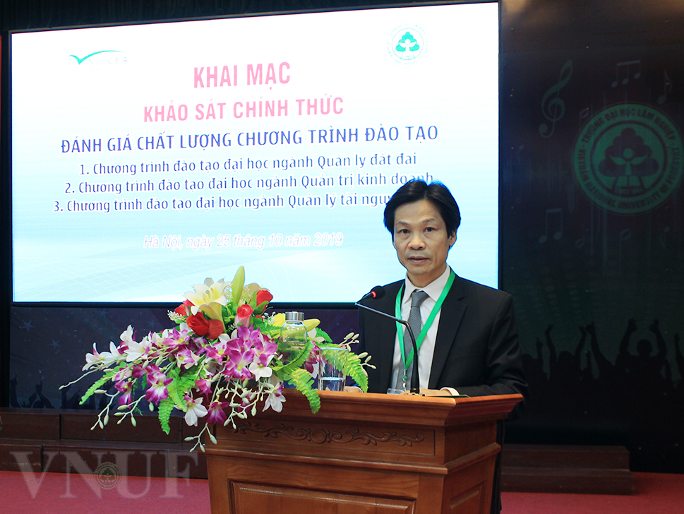Sáng ngày 25/10/2019, Trung tâm Kiểm định chất lượng giáo dục - Đại học Quốc gia Hà Nội (KĐCLGD - ĐHQGHN) đã phối hợp với Trường Đại học Lâm nghiệp tổ chức khai mạc đợt khảo sát chính thức đánh giá chất lượng 03 chương trình đào tạo chính quy trình độ đại học (ngành Quản lý đất đai, ngành Quản lý tài nguyên rừng và ngành Quản trị kinh doanh) theo bộ tiêu chuẩn đánh giá chất lượng chương trình đào tạo ban hành theo Thông tư số 04/2016/TT-BGDĐT ngày 14/3/2016 của Bộ Giáo dục và Đào tạo.