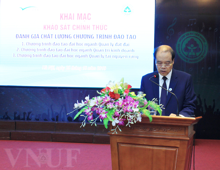 Thay mặt Nhà trường, NGND.GS.TS. Trần Văn Chứ - Hiệu trưởng Trường Đại học Lâm nghiệp đánh giá cao tầm ảnh hưởng của công tác kiểm định chất lượng đến việc cải tiến chất lượng giáo dục nói chung và cải tiến chất lượng các chương trình đào tạo nói riêng trong Nhà trường, đồng thời cam kết sẽ hợp tác, hỗ trợ và cung cấp đầy đủ các thông tin, minh chứng trong thời gian Đoàn Chuyên gia đánh giá ngoài làm việc trực tiếp tại Trường, đồng thời hy vọng Đoàn sẽ có những nhận định, đánh giá xác thực nhất và có những khuyến nghị giúp Nhà trường cải tiến chất lượng, xác định các giải pháp chiến lược cho phát triển Nhà trường.