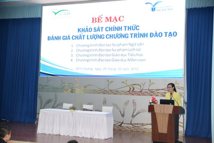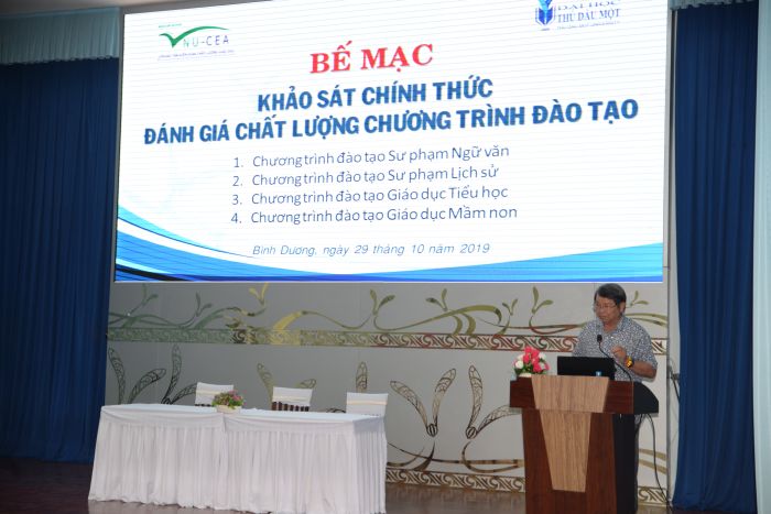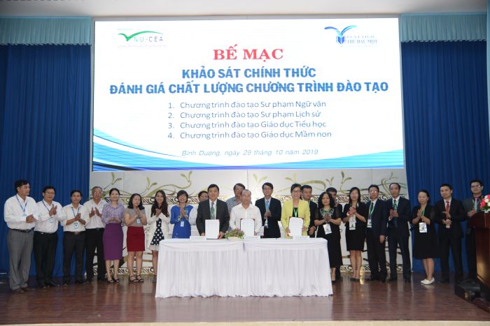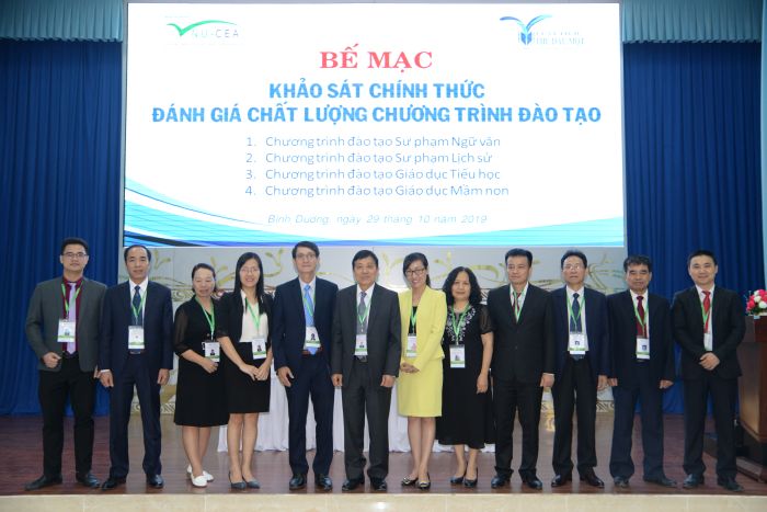 Chiều ngày 29/10/2019, Trung tâm Kiểm định chất lượng giáo dục - Đại học Quốc gia Hà Nội (KĐCLGD) đã phối hợp với Trường Đại học Thủ Dầu Một tổ chức bế mạc khảo sát chính thức đánh giá chất lượng 04 chương trình đào tạo chính quy trình độ đại học của Nhà trường (ngành Sư phạm Lịch sử, ngành Sư phạm Ngữ văn, ngành Giáo dục Tiểu học và ngành Giáo dục Mầm non).