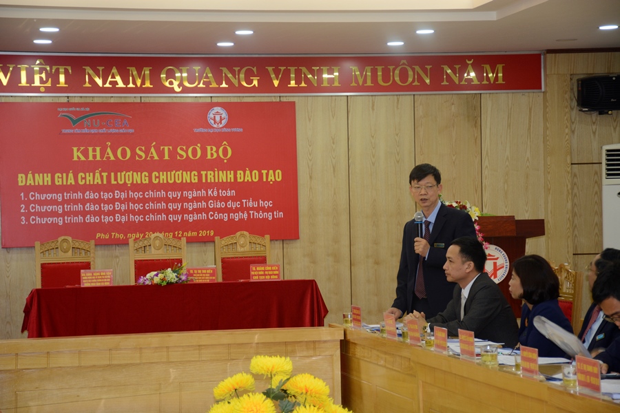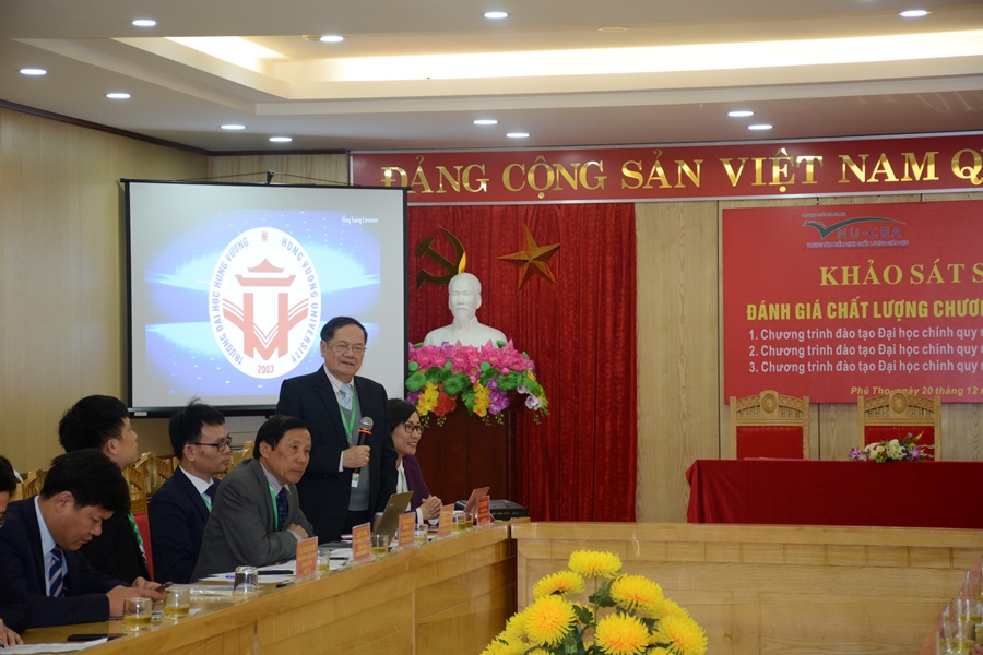 Đại diện Lãnh đạo Trường Đại học Hùng Vương, TS. Hoàng Công Kiên – Phó Hiệu trưởng phụ trách Nhà trường đã giới thiệu quy trình tự đánh giá các chương trình đào tạo của Nhà trường, đồng thời cam kết sẽ tập trung để bổ sung hồ sơ minh chứng theo yêu cầu của Đoàn Chuyên gia đánh giá ngoài, chuẩn bị tốt nhất các điều kiện cho đợt khảo sát chính thức của Đoàn tại Trường.