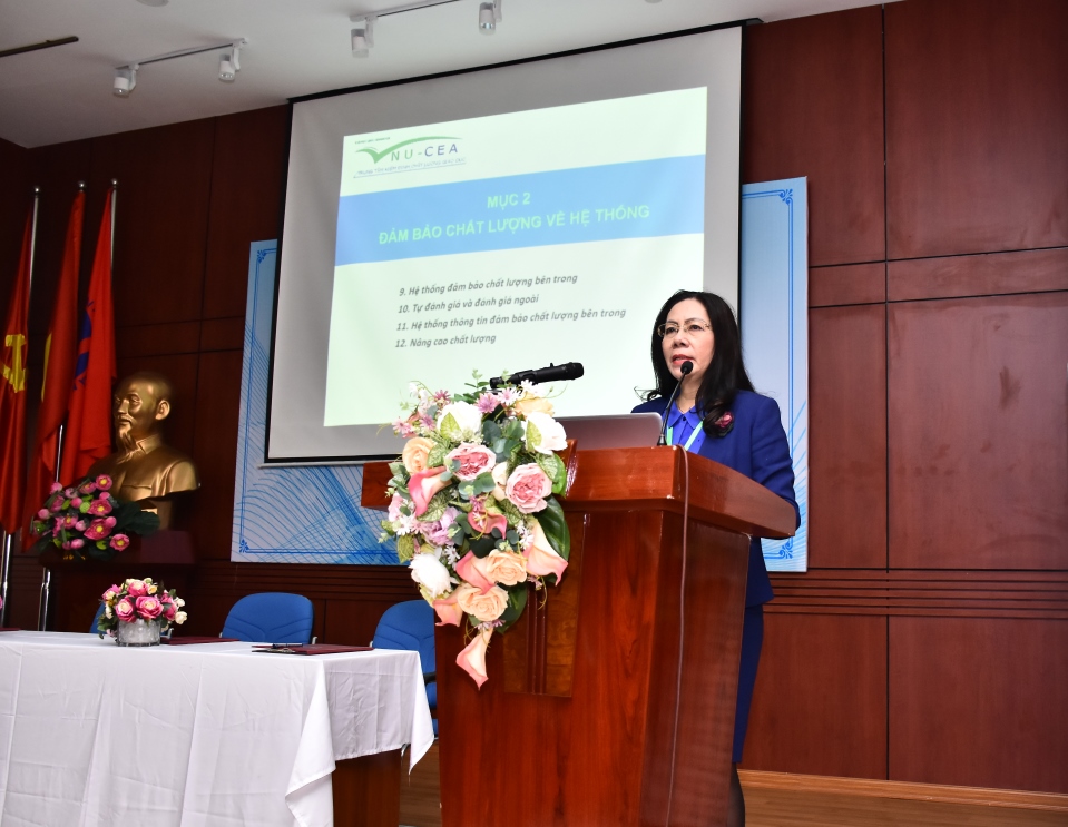 Trong bài phát biểu của mình, TS. Tạ Thị Thu Hiền, Phó Giám đốc phụ trách Trung tâm ghi nhận và đánh giá cao các quy trình, phương pháp đánh giá khoa học, tinh thần làm việc trách nhiệm, khách quan, công tâm, trí tuệ của Đoàn Chuyên gia đánh giá ngoài trong quá trình nghiên cứu hồ sơ minh chứng, khảo sát sơ bộ và khảo sát chính thức để đưa ra những nhận định, đánh giá và khuyến nghị cải tiến chất lượng đối với Nhà trường, đồng thời cảm ơn Trường Đại học Nội vụ Hà Nội đã hỗ trợ và nỗ lực để cung cấp thông tin, minh chứng phục vụ cho quá trình đánh giá của Đoàn.