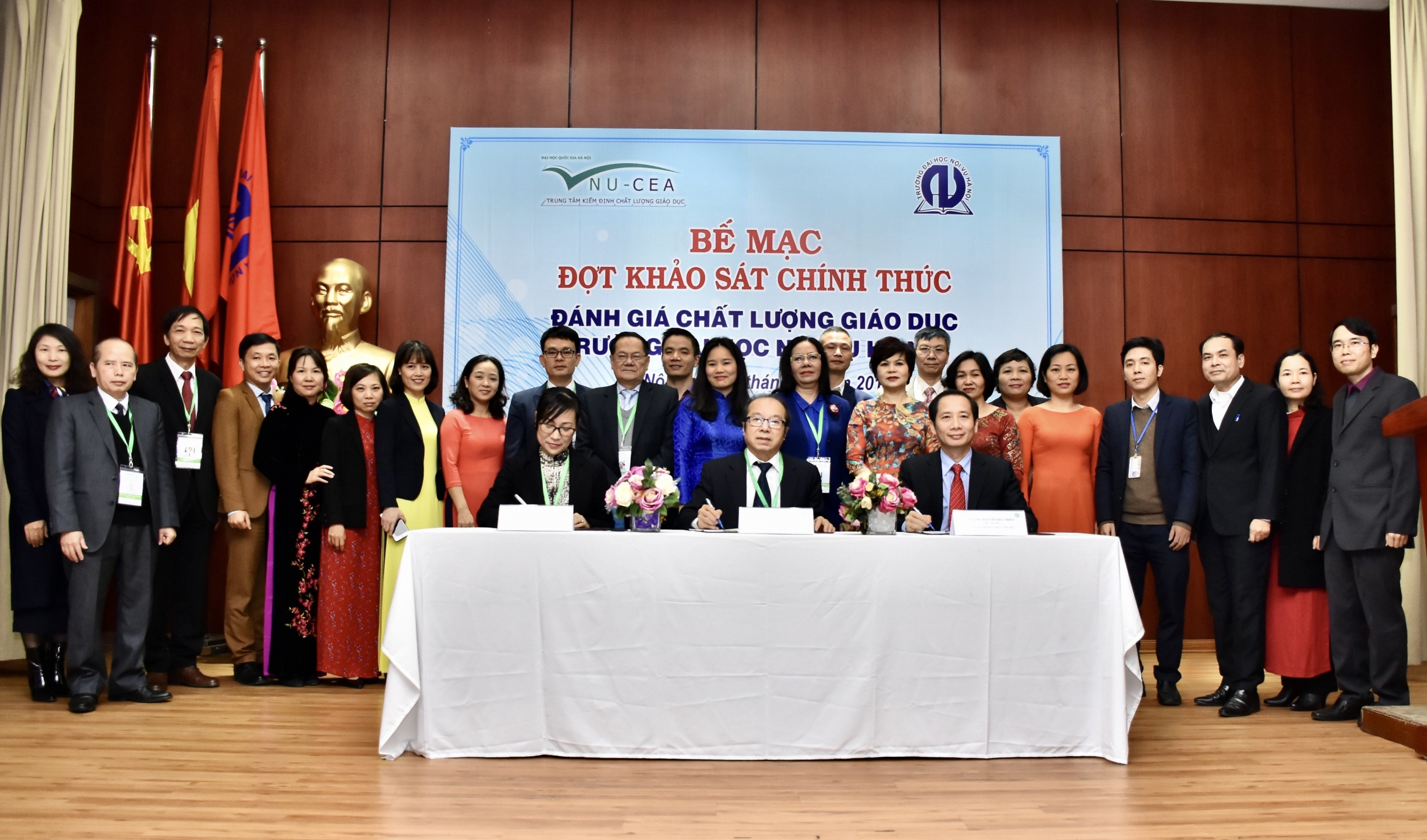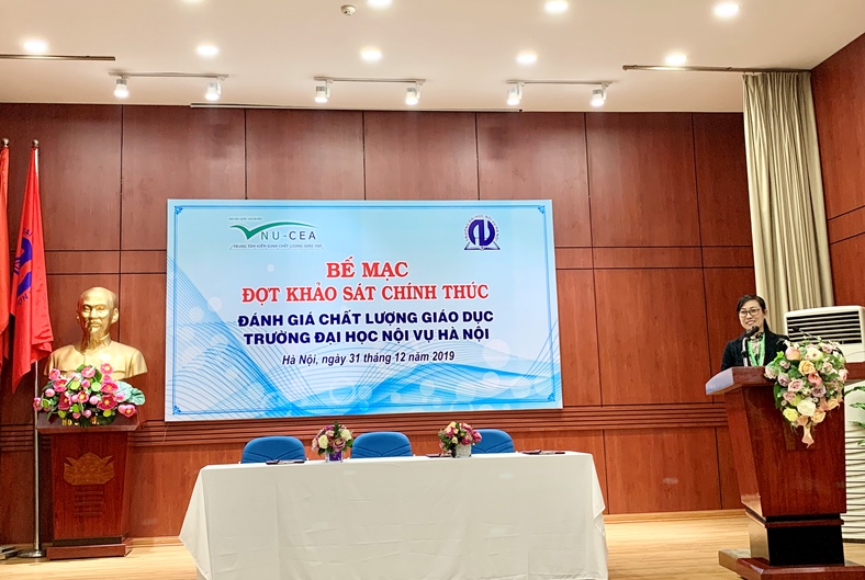 Sáng ngày 31/12/2019, Trung tâm Kiểm định chất lượng giáo dục - Đại học Quốc gia Hà Nội (KĐCLGD - ĐHQGHN) đã phối hợp với Trường Đại học Nội vụ Hà Nội tổ chức bế mạc đợt khảo sát chính thức đánh giá chất lượng giáo dục Trường Đại học Nội vụ Hà Nội.